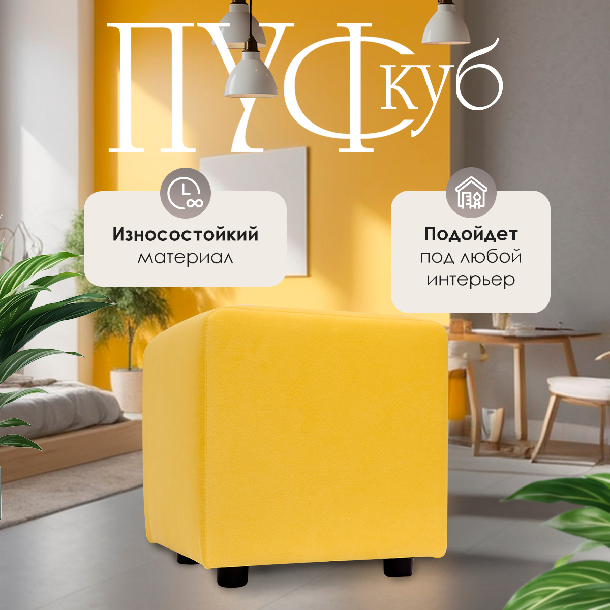 Отзывы на Пуф куб квадратный в прихожую велюр мягкий / Пуфик для туалетного столика Желтый 37*37*38 см