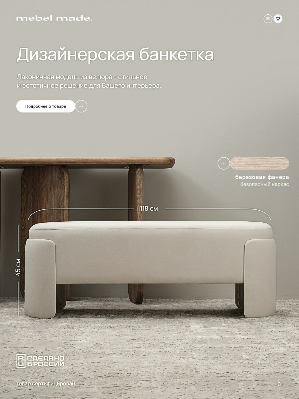 Банкетка в прихожую в ткани велюр Teddy 01 1180мм*450мм*380мм информация: