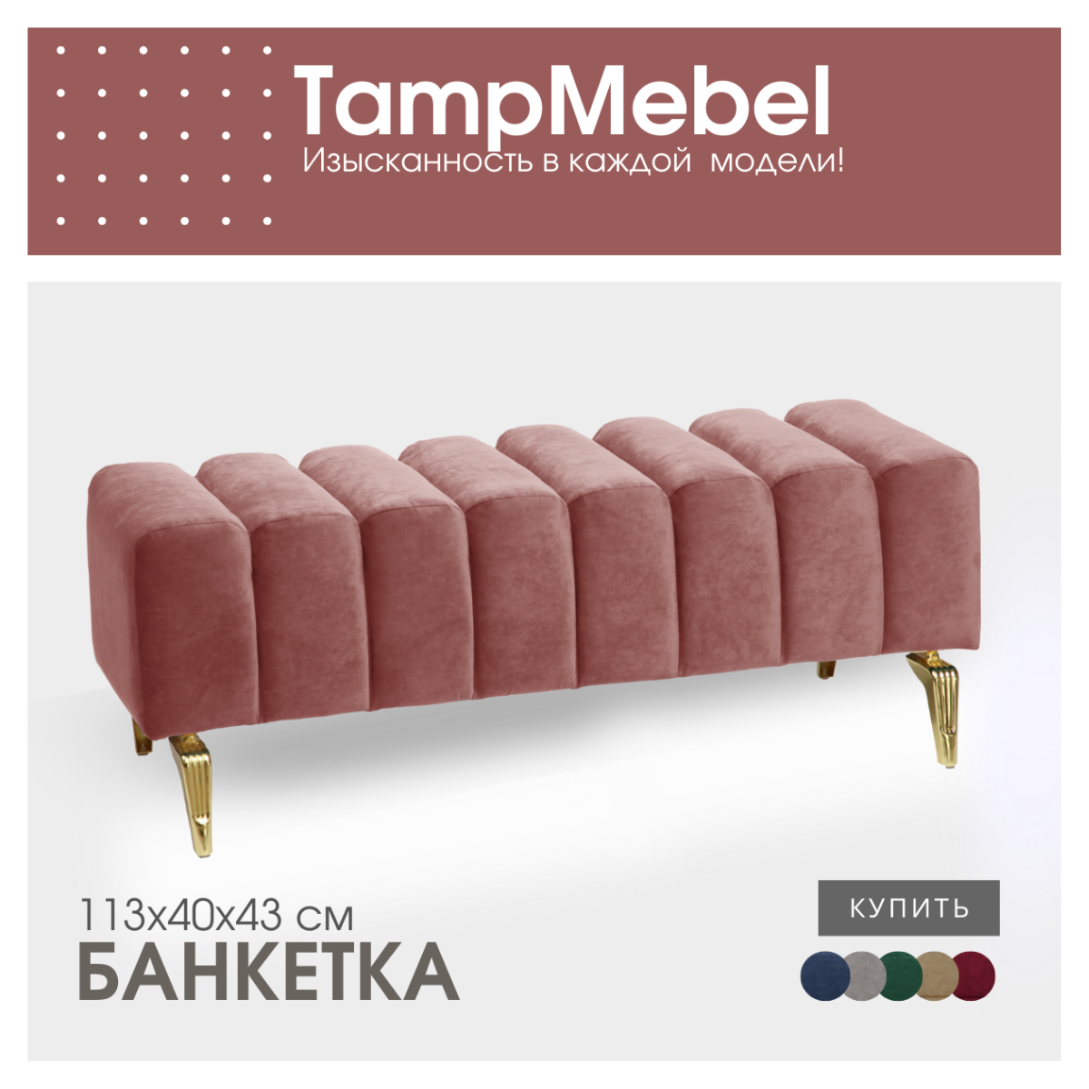 0 отзывов, средняя оценка 0. Чтобы купить «Банкетка в спальню, пуфик для прихожей "Santorini" с изогнутыми ножками, ткань велюр, темно-розовая» по лучшей цене мы сканируем авито, алиэкспресс, маркет, озон, савеловский, плеер, горбушку, беру, официальные сайты и находим минимальную. Администрация не несет ответсвенность актуальность цен на Банкетка в спальню, пуфик для прихожей "Santorini" с изогнутыми ножками, ткань велюр, темно-розовая, более подробно узнавайте на сайте магазина.