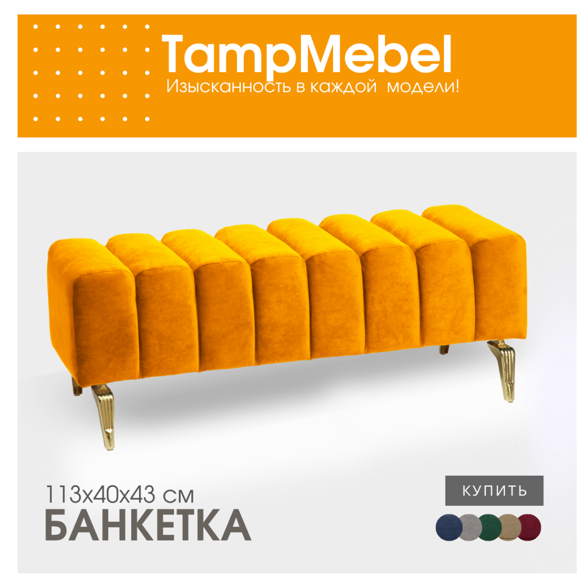 Отзывы на Банкетка в спальню, пуфик для прихожей "Santorini" с изогнутыми ножками, ткань велюр, оранжевая