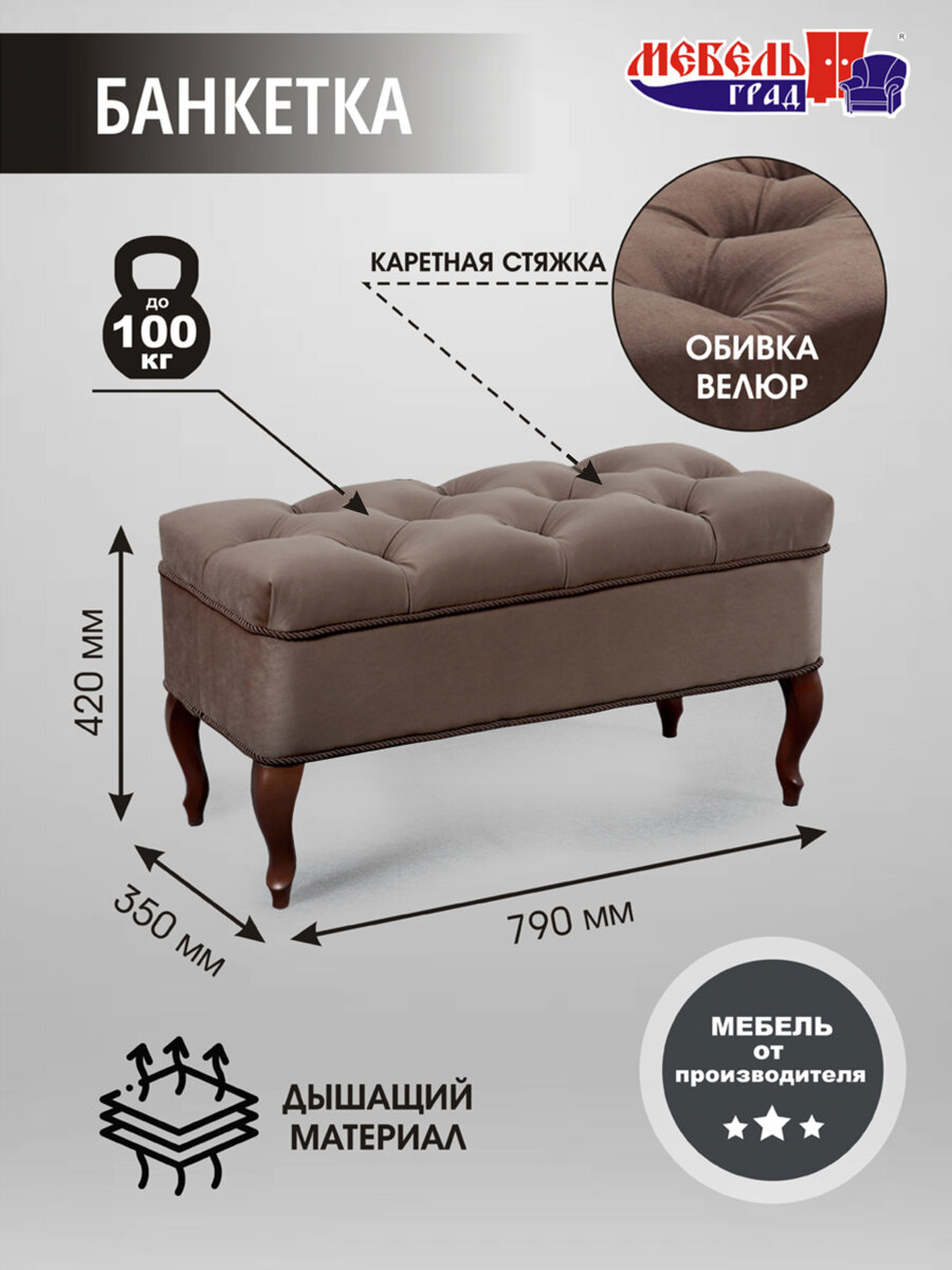 Банкетка №15 Темно-коричневый велюр информация: