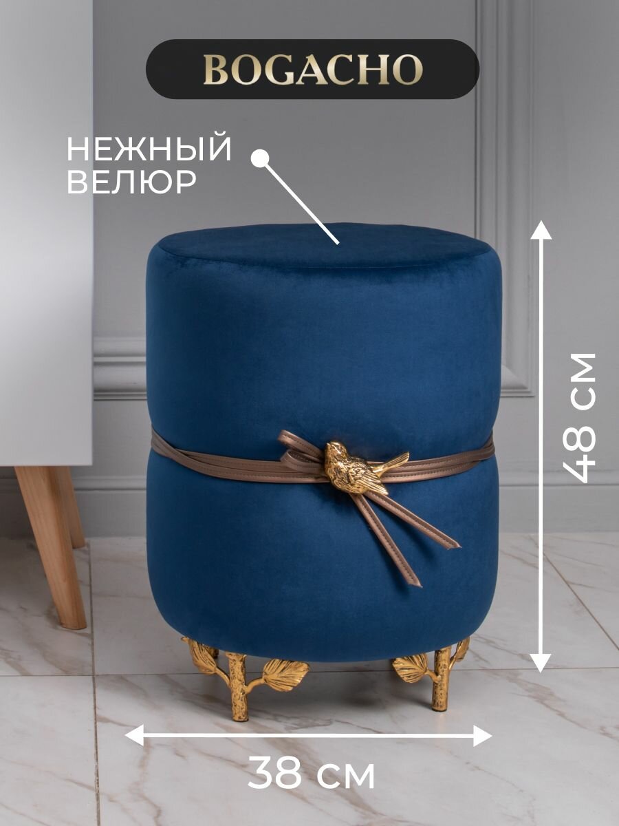 Пуф круглый Элика / пуфик в прихожую, в спальню / велюр / темно-синий