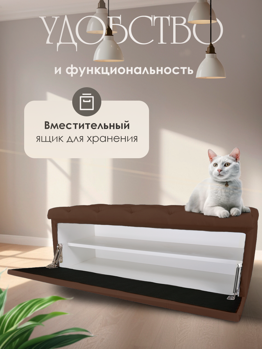 Обувница для прихожей с сиденьем закрытая / Пуф мягкий велюр / Банкетка в прихожую Коричневый 89.5*38.5*38 информация: