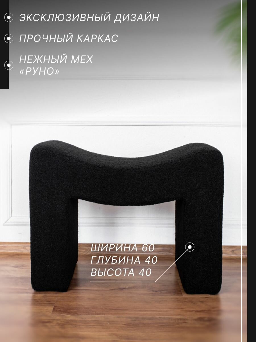 Дизайнерская банкетка пуф "Мем" Черный оникс информация: