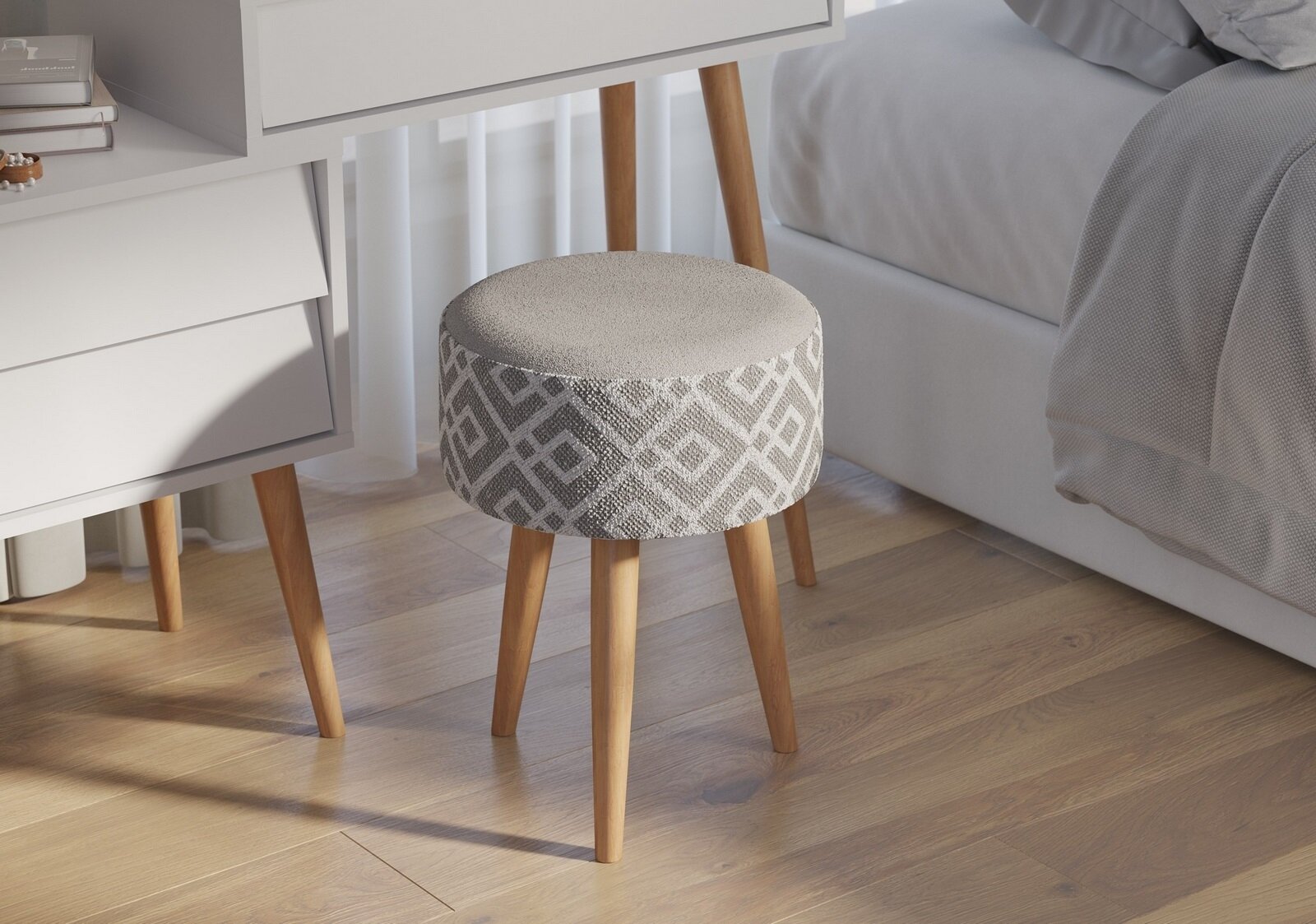 Отзывы на Круглая банкетка на трёх ножках Гранд Кволити Юна 6-5132, обивка ткань серая с рисунком, 33х33х45 см.