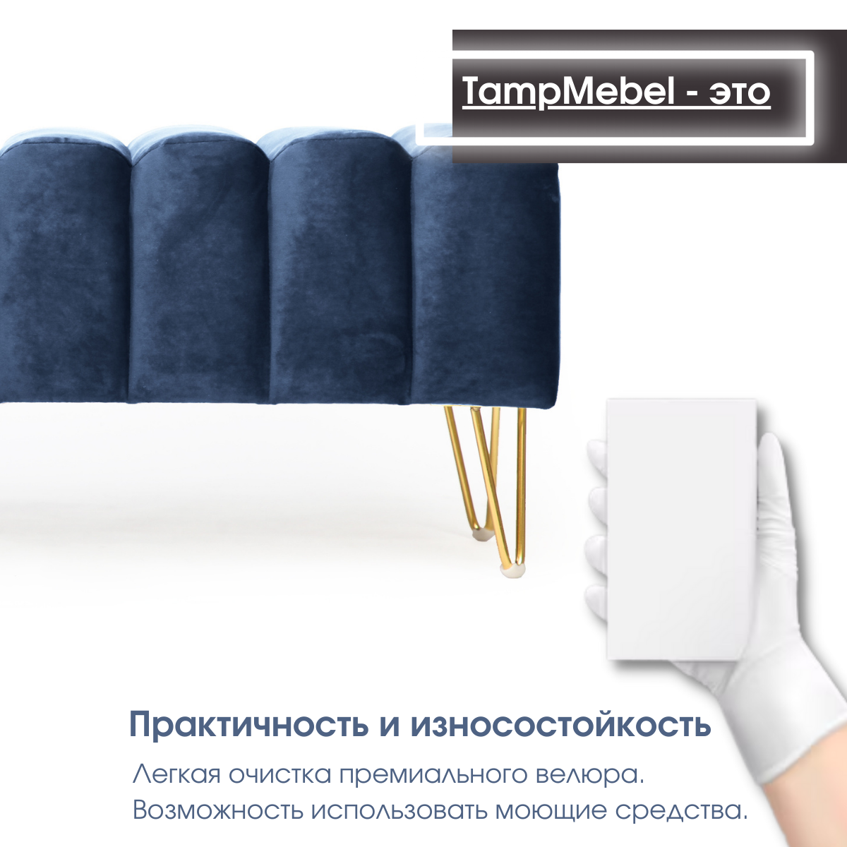Отзывы на Банкетка в спальню, пуфик для прихожей "Santorini" с треугольными ножками, ткань велюр, синяя