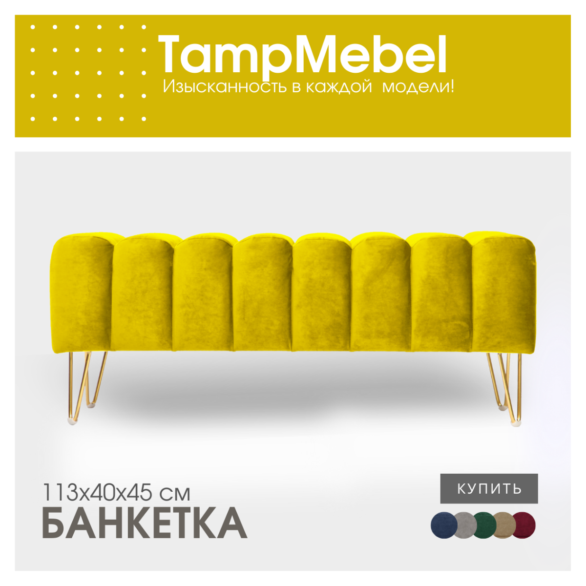 0 отзывов, средняя оценка 0. Чтобы купить «Банкетка в спальню, пуфик для прихожей "Santorini" с треугольными ножками, ткань велюр, желтая» по лучшей цене мы сканируем авито, алиэкспресс, маркет, озон, савеловский, плеер, горбушку, беру, официальные сайты и находим минимальную. Администрация не несет ответсвенность актуальность цен на Банкетка в спальню, пуфик для прихожей "Santorini" с треугольными ножками, ткань велюр, желтая, более подробно узнавайте на сайте магазина.