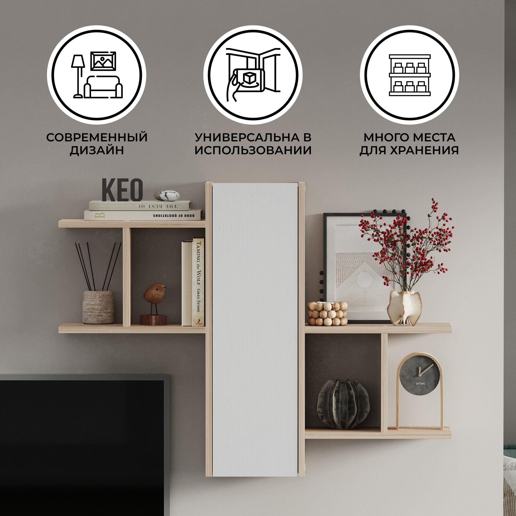 10 цен на Полка настенная 74х20х99см белый дуб сонома навесная деревянная для книг цветов лофт в спальню гостиную Кео ГРС-ПЛК-203
