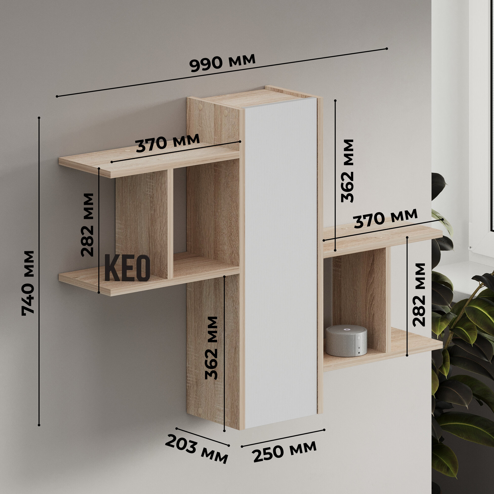 Полка настенная 74х20х99см белый дуб сонома навесная деревянная для книг цветов лофт в спальню гостиную Кео ГРС-ПЛК-203 информация: