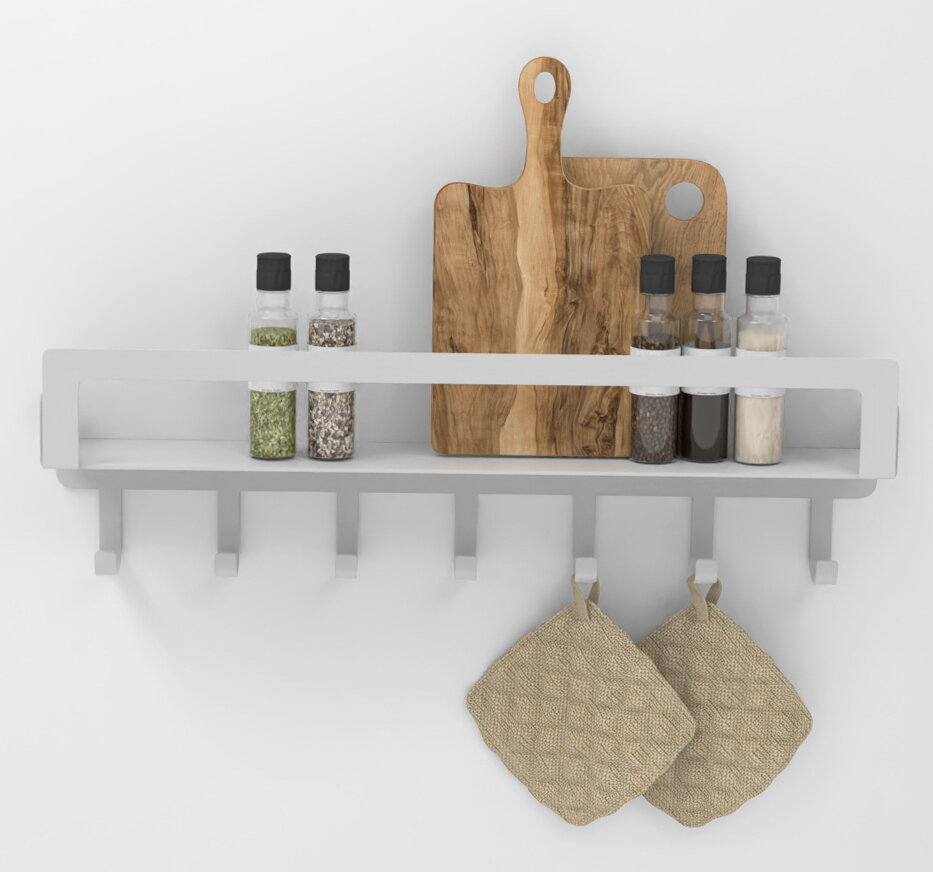 Полка для кухни металлическая с крючками ElectricLight 49,5х7,5. Белая. 938 ₽