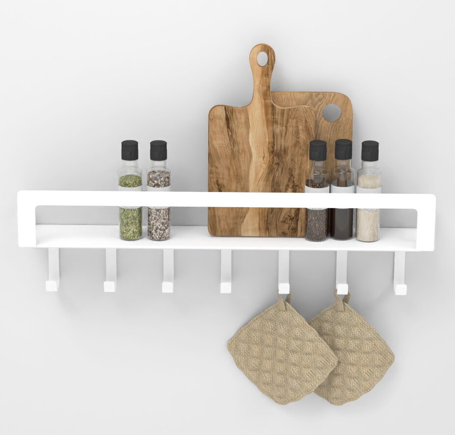 10 цен на Полка для кухни металлическая с крючками ElectricLight 49,5х7,5. Белая.