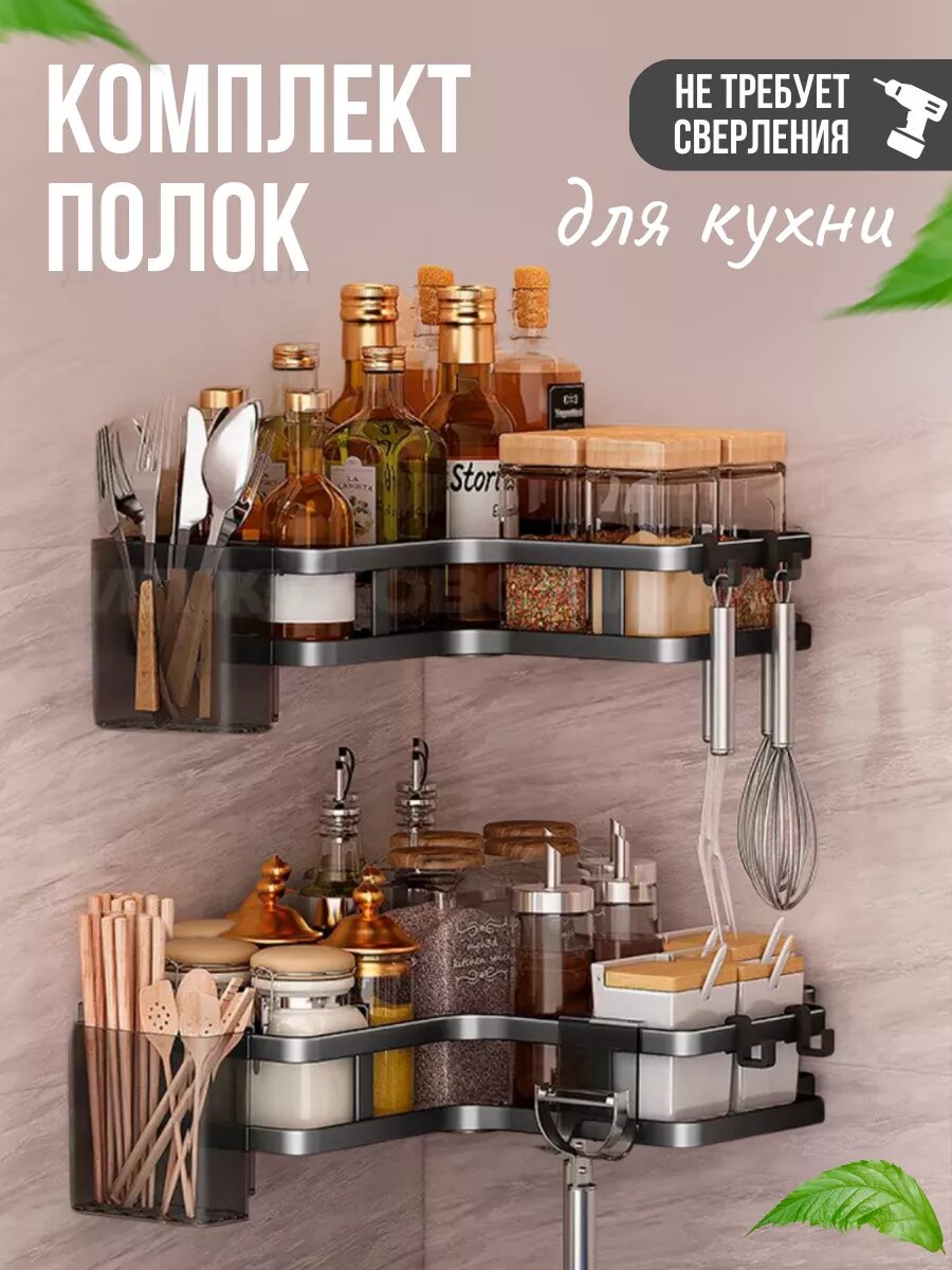 Отзывы на Полки кухонные настенные, без сверления, для специй, для банок, большая нагрузка, 2 полки в комплекте