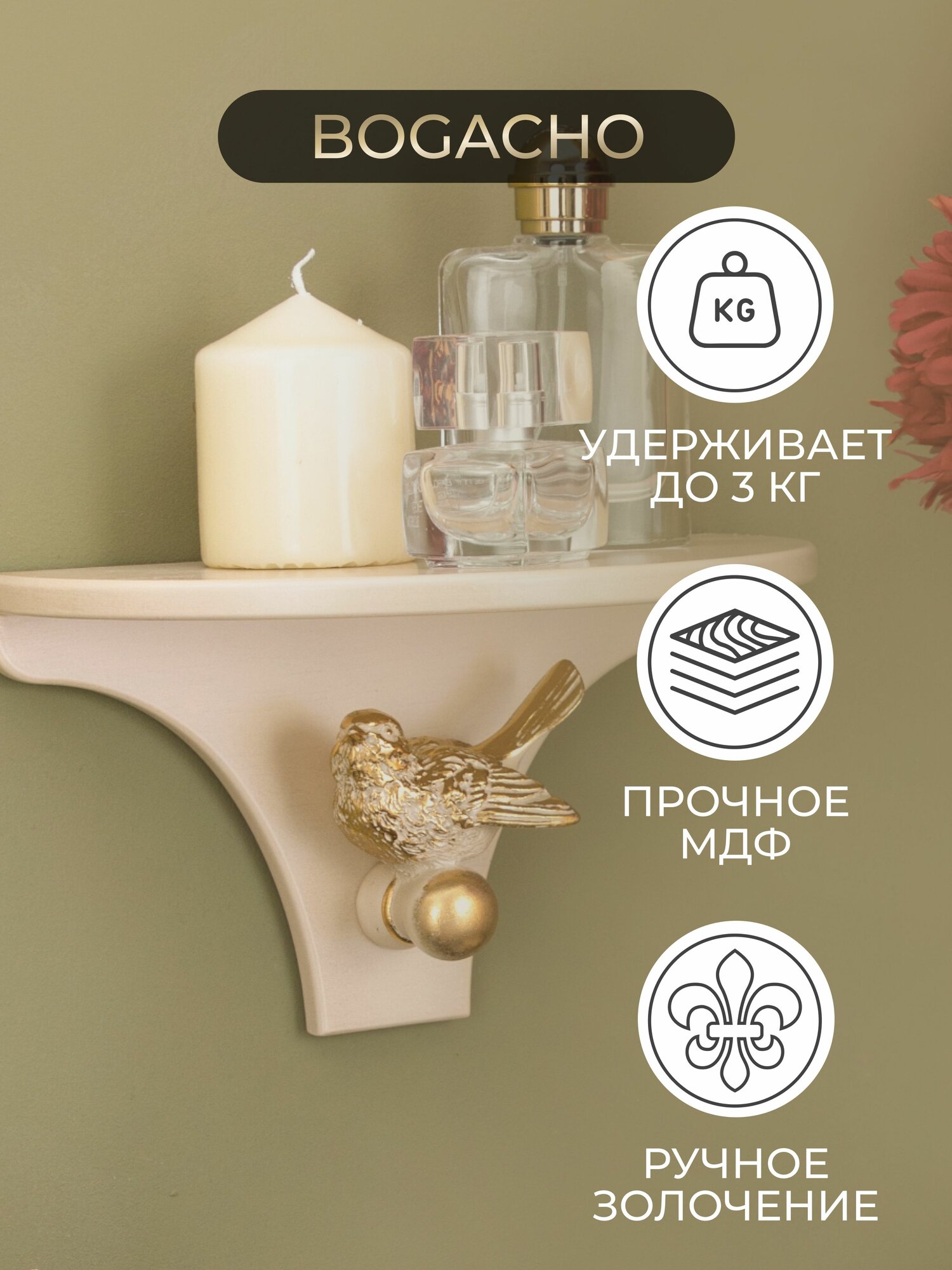 Отзывы на Узкая настенная полочка с элементами из мрамора BOGACHO Терра Гармония малая, для интерьера в стиле прованс