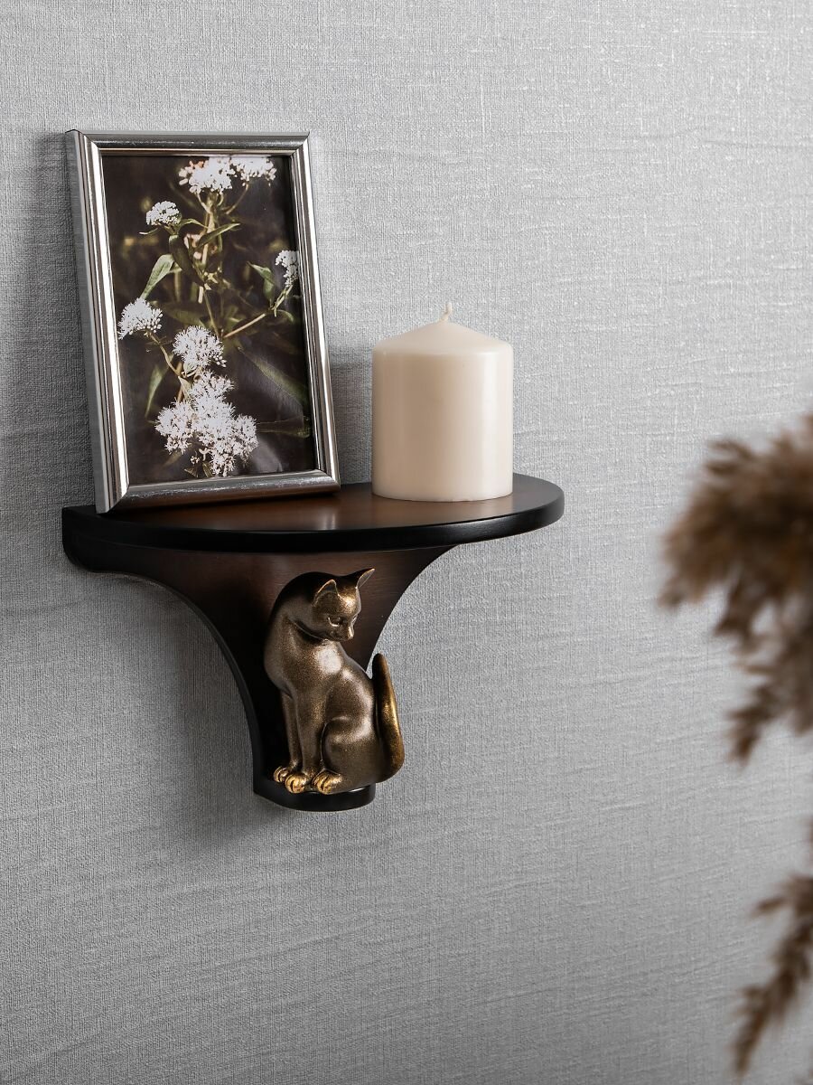 Отзывы на Узкая настенная полочка с элементами из мрамора BOGACHO Кошка Грация, для интерьера в стиле прованс