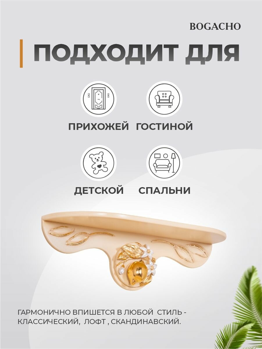 Отзывы на Узкая настенная полочка с элементами из мрамора BOGACHO Лайм средняя, для интерьера в стиле прованс