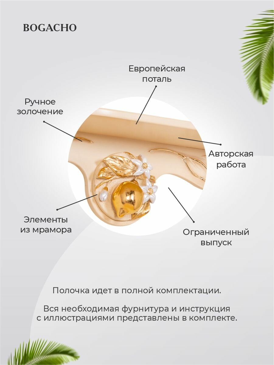 10 цен на Узкая настенная полочка с элементами из мрамора BOGACHO Лайм средняя, для интерьера в стиле прованс