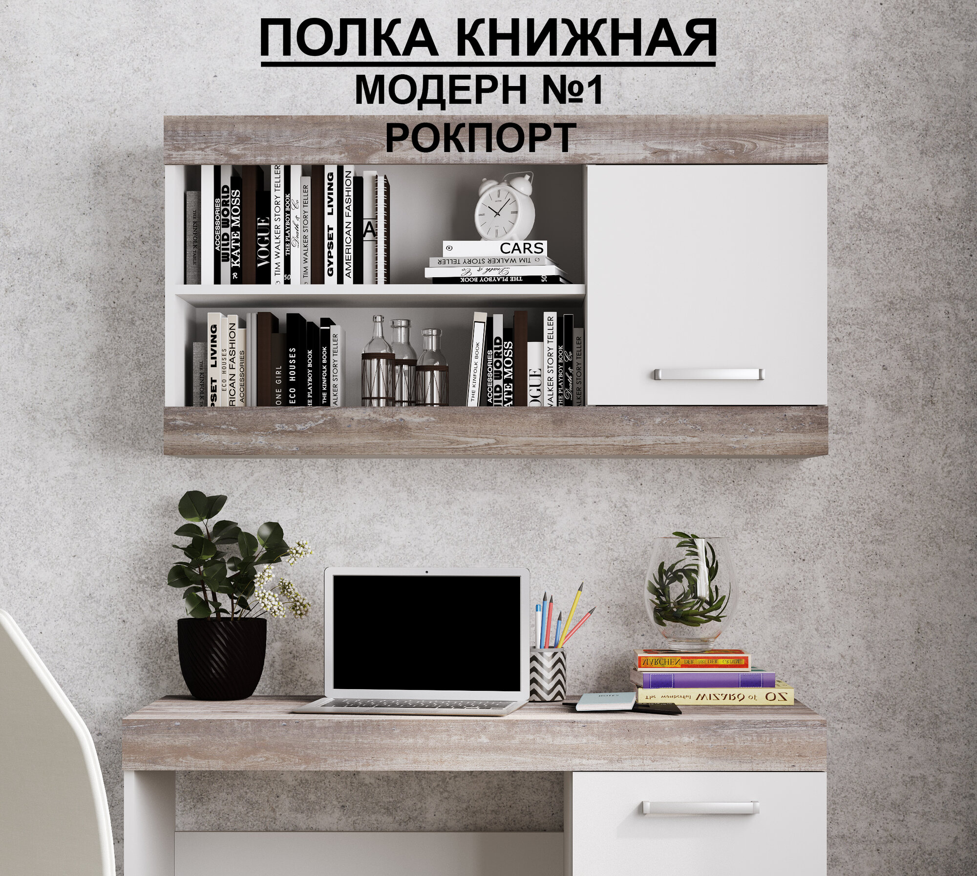 Полка книжная №1 "Модерн", В*Ш*Г (см) 56х110х30, ЛДСП, белый / сосна рокпорт информация: