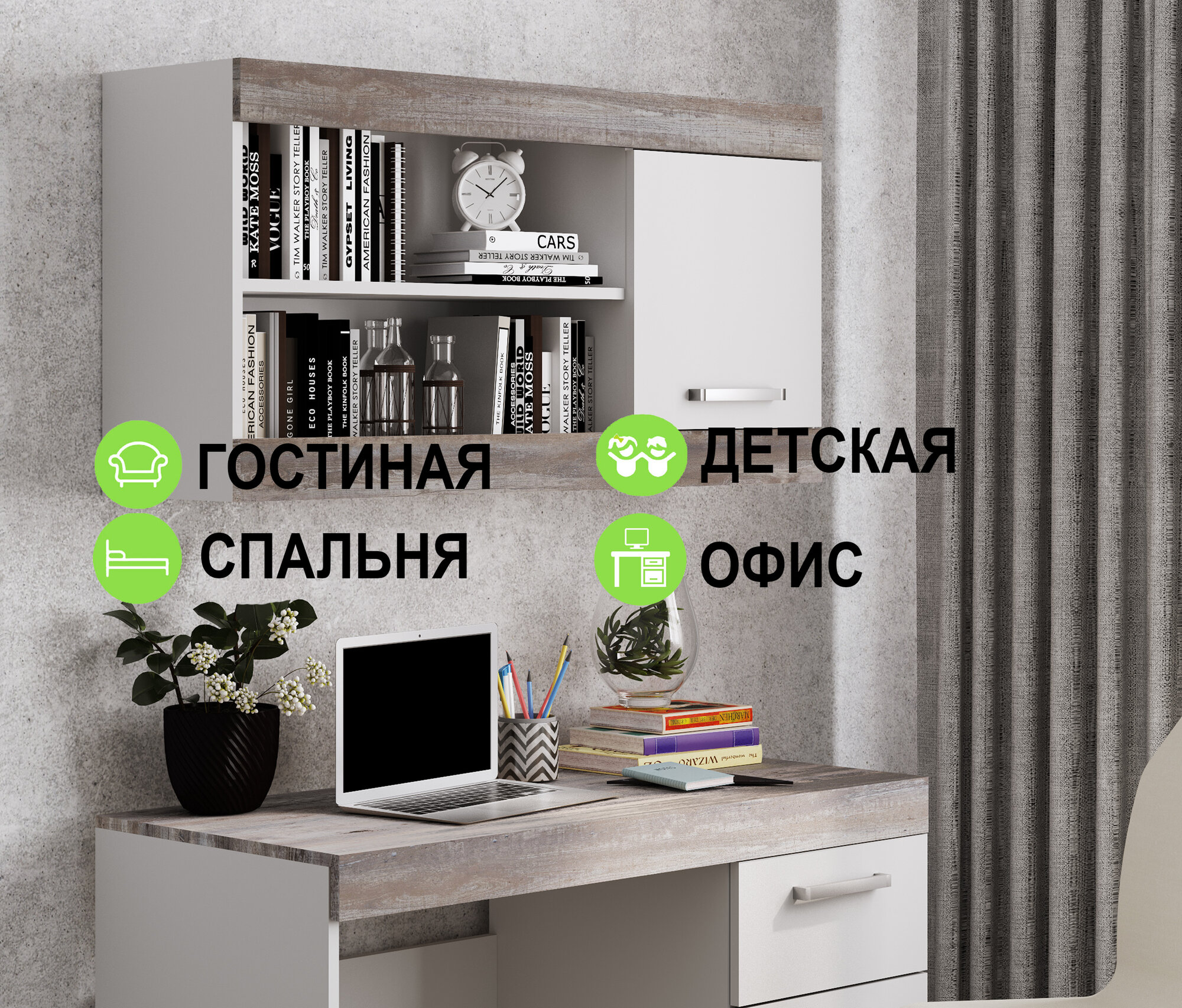 10 цен на Полка книжная №1 "Модерн", В*Ш*Г (см) 56х110х30, ЛДСП, белый / сосна рокпорт