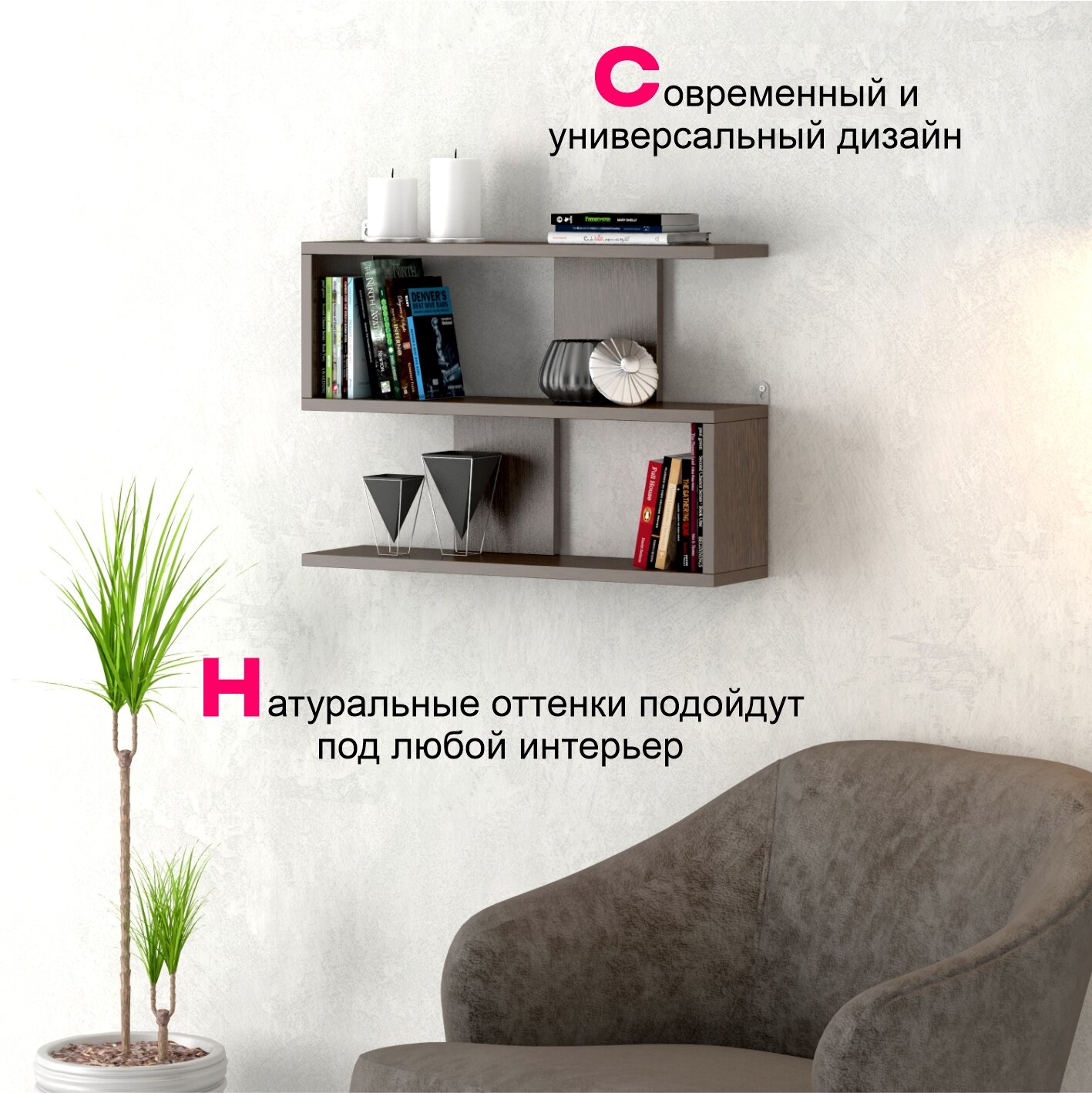 10 цен на Полка настенная, Полка для книг Тип 7 Венге Цаво