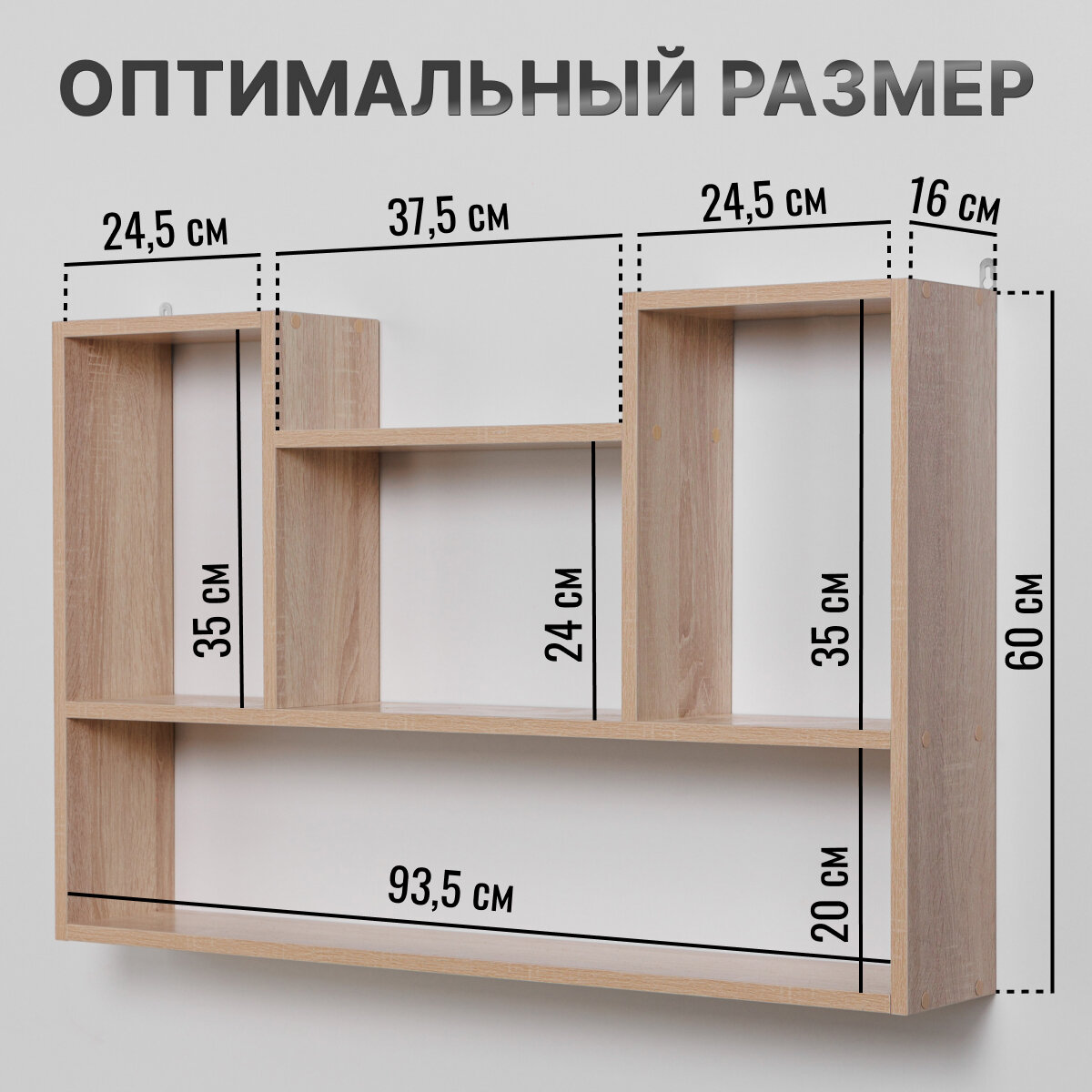 Полка настенная навесная универсальная, Дуб Сонома, 93,5х60х16 см, ЛДСП информация: