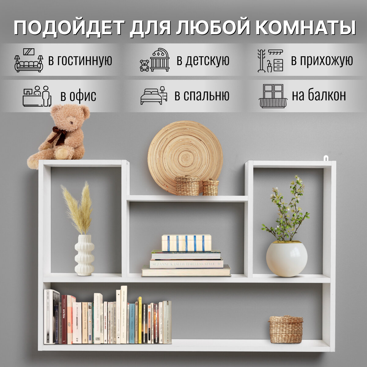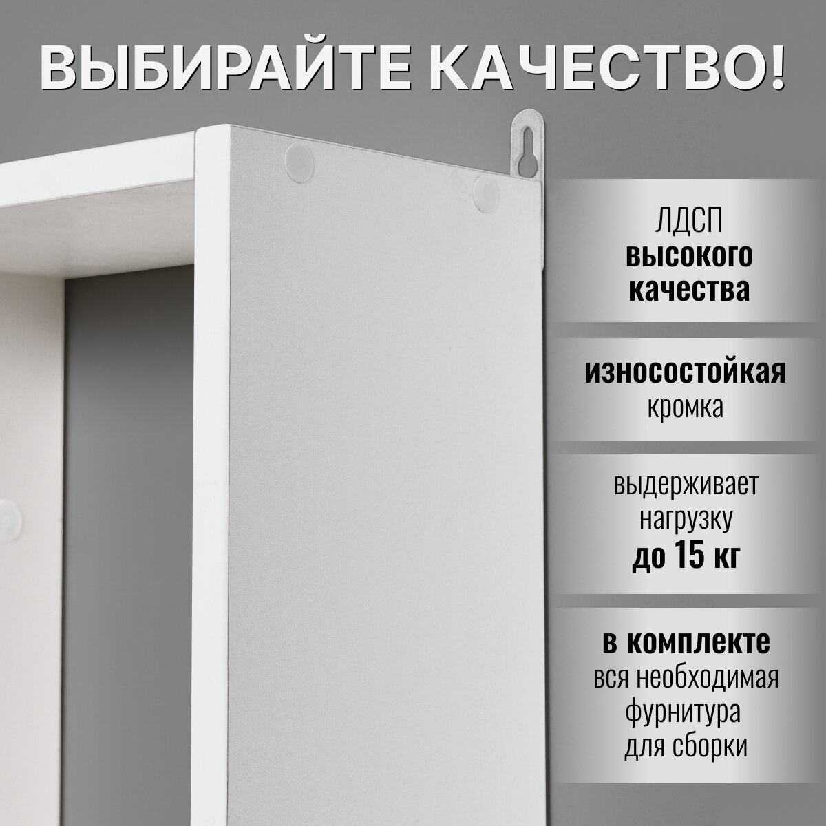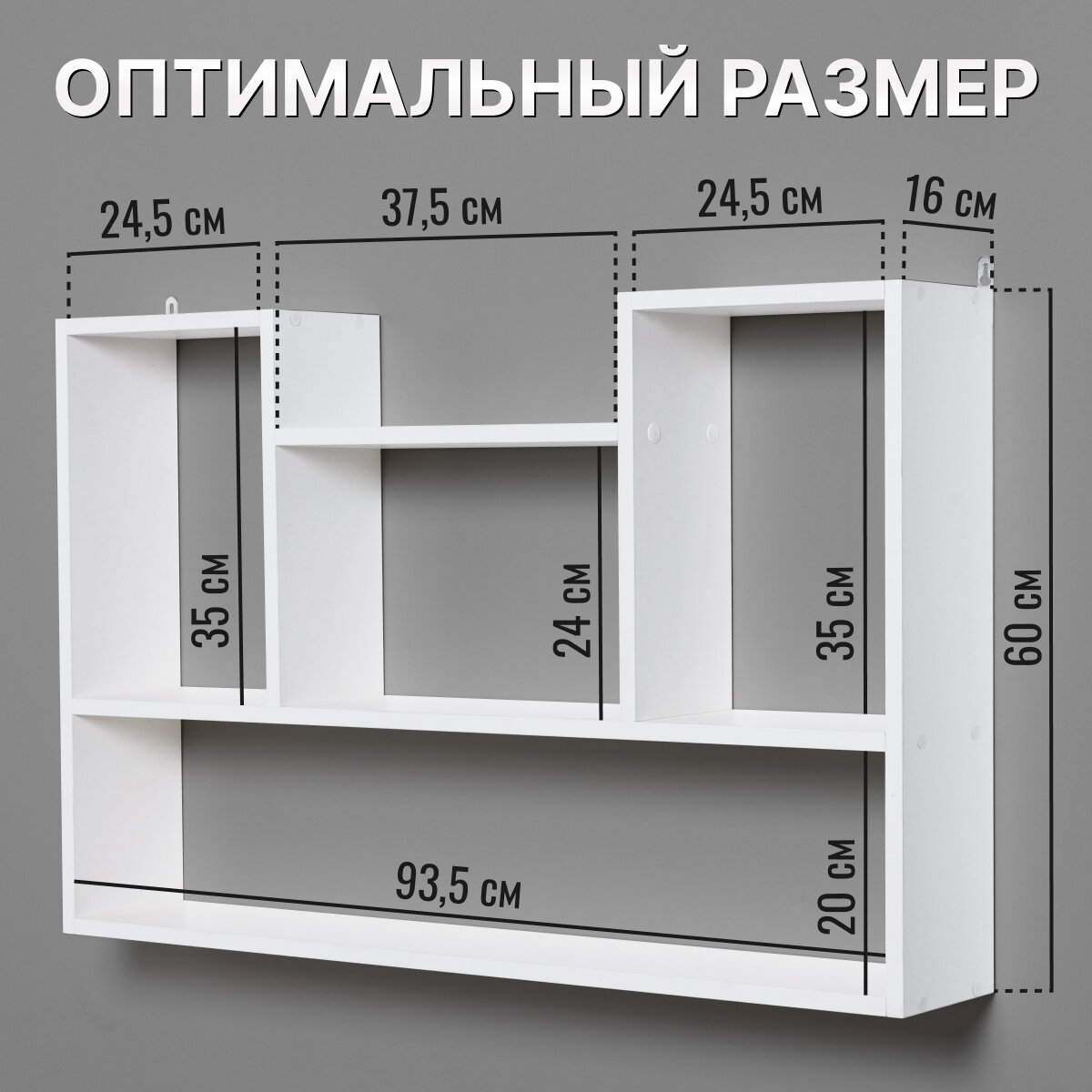 Полка настенная навесная универсальная, Белая, 93,5х60х16 см, ЛДСП информация: