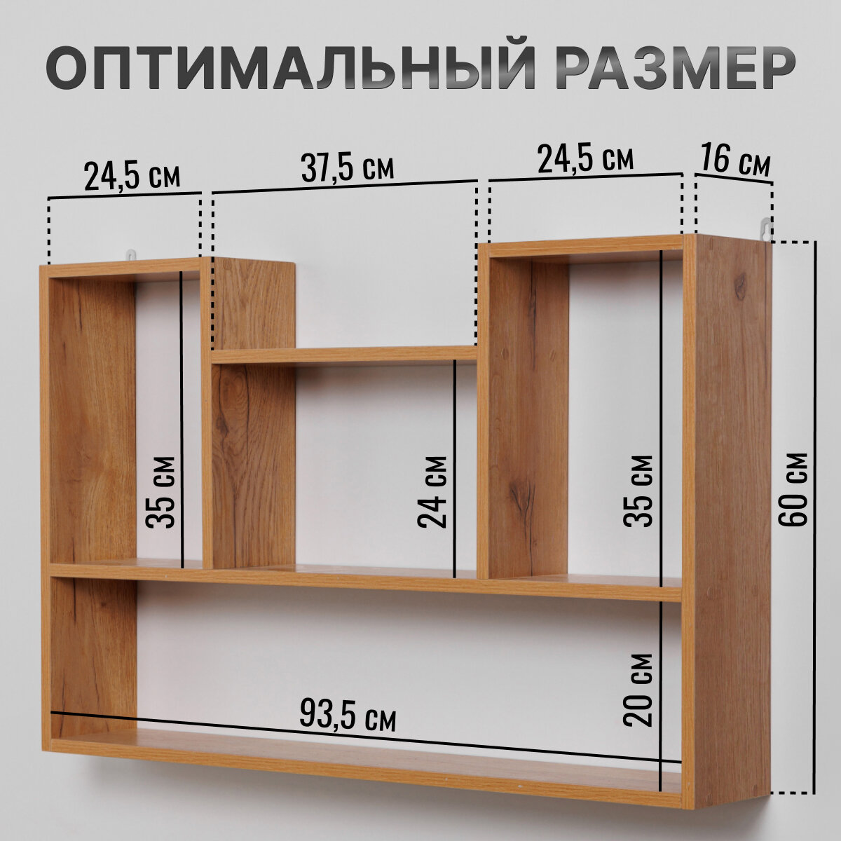 Полка настенная навесная универсальная, Дуб Золотистый, 93,5х60х16 см, ЛДСП информация: