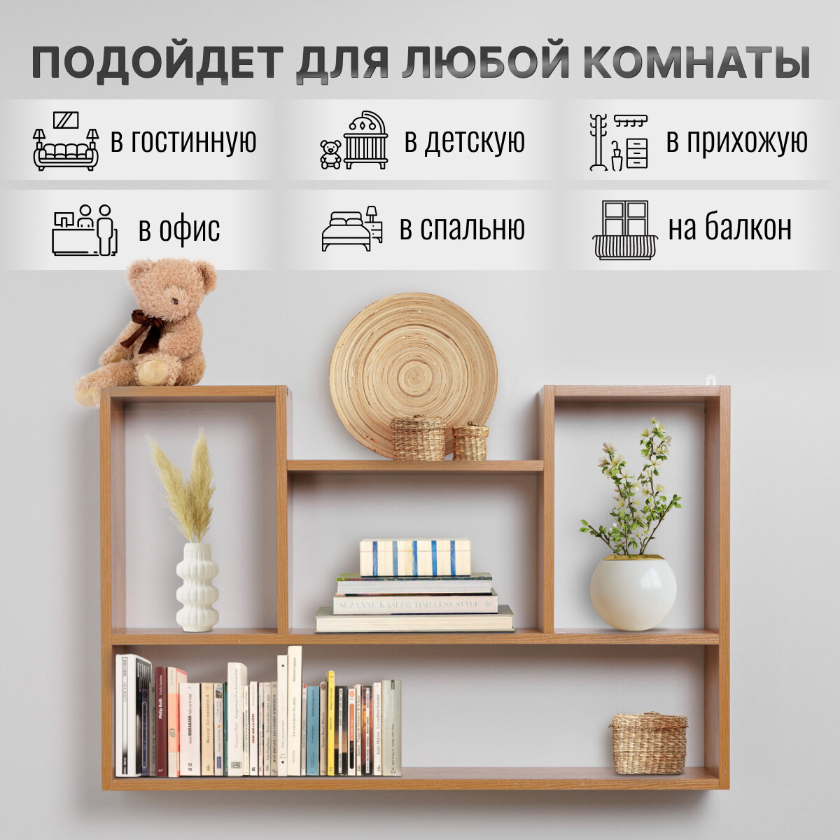 10 цен на Полка настенная навесная универсальная, Дуб Золотистый, 93,5х60х16 см, ЛДСП