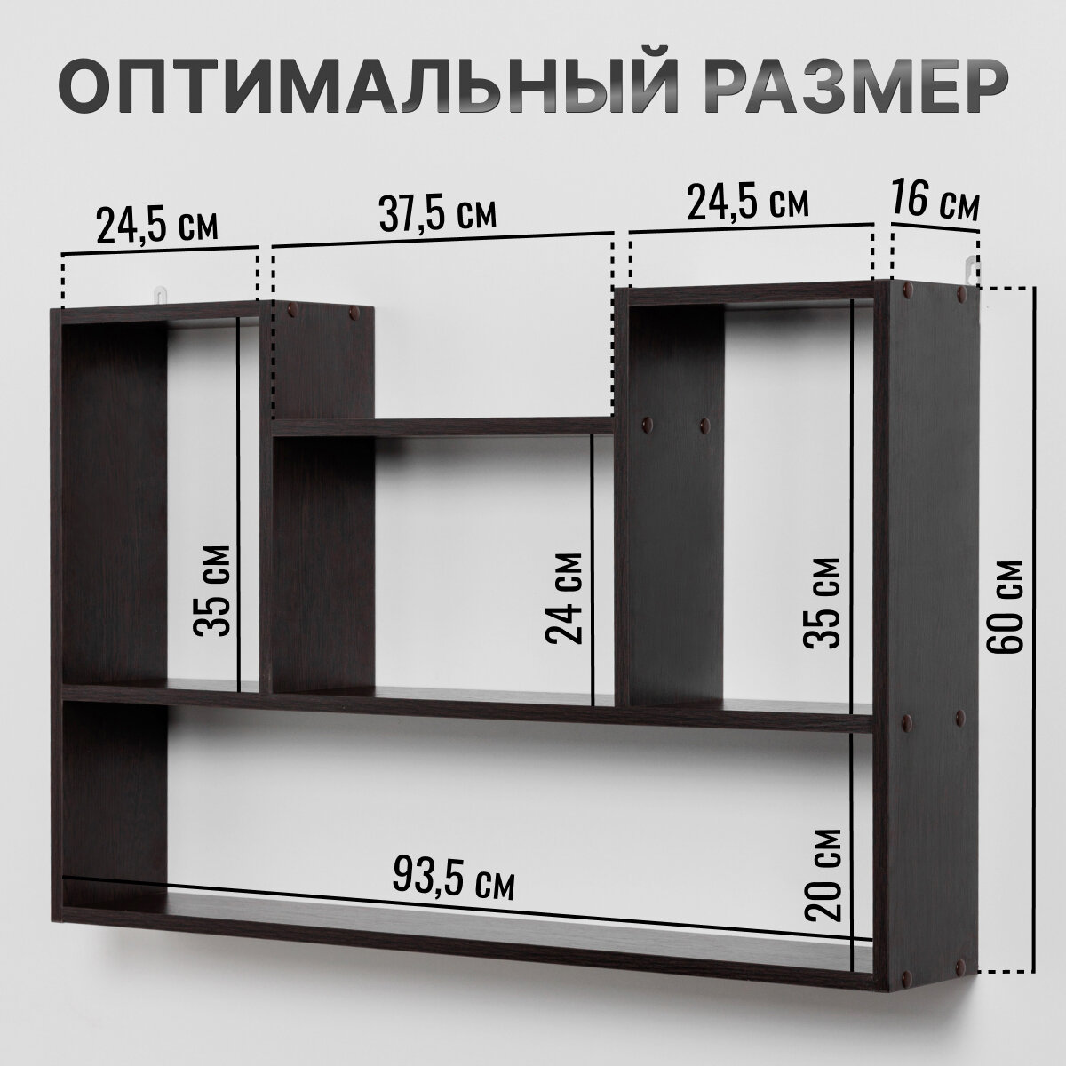 Полка настенная навесная универсальная, Венге, 93,5х60х16 см, ЛДСП информация: