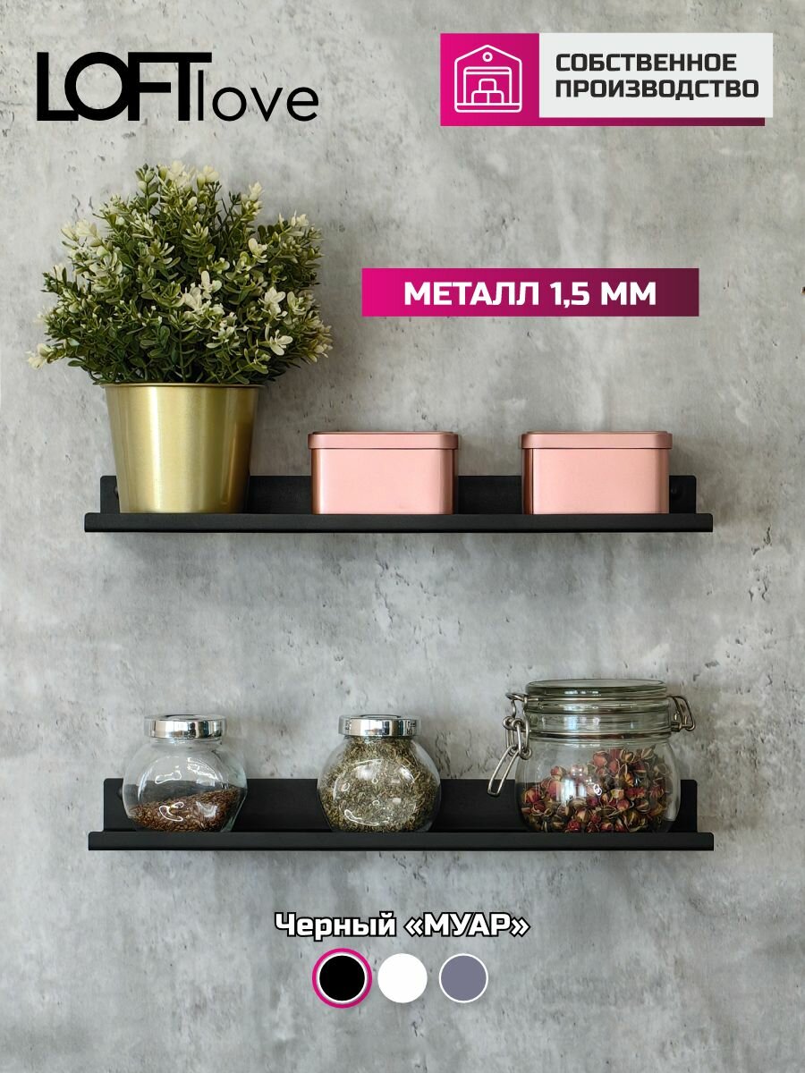 Полка настенная для ванной и кухни металл 2шт 40см чёрный информация: