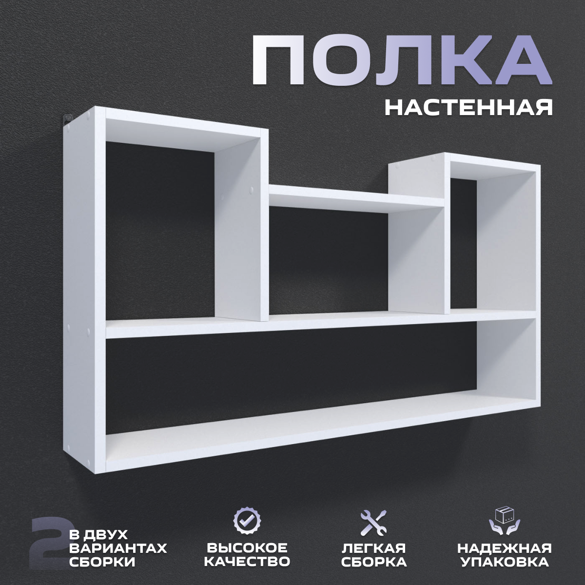 Полка настенная навесная, 2 варианта сборки, 90х50 см, белый информация: