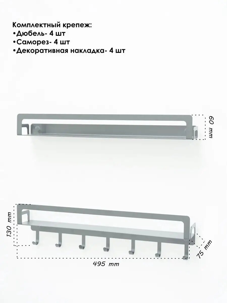 10 цен на Полка для кухни металлическая ElectricLight 49,5х7,5. 2 полки с крючками. Металлик.