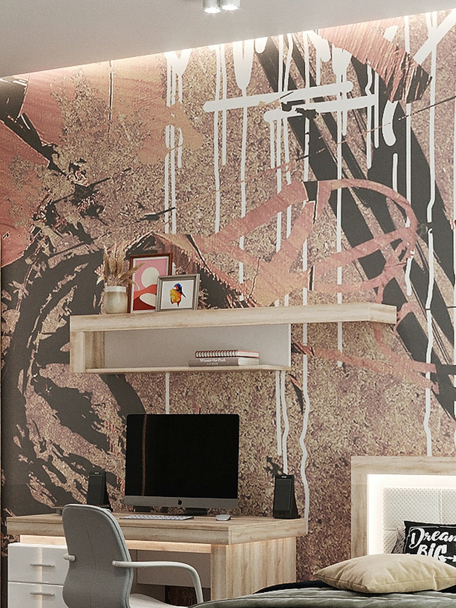 Кровать с матрасом 140х200 см двуспальная MOON FAMILY 1250, серая, с подъемным механизмом, основание входит в комплект
