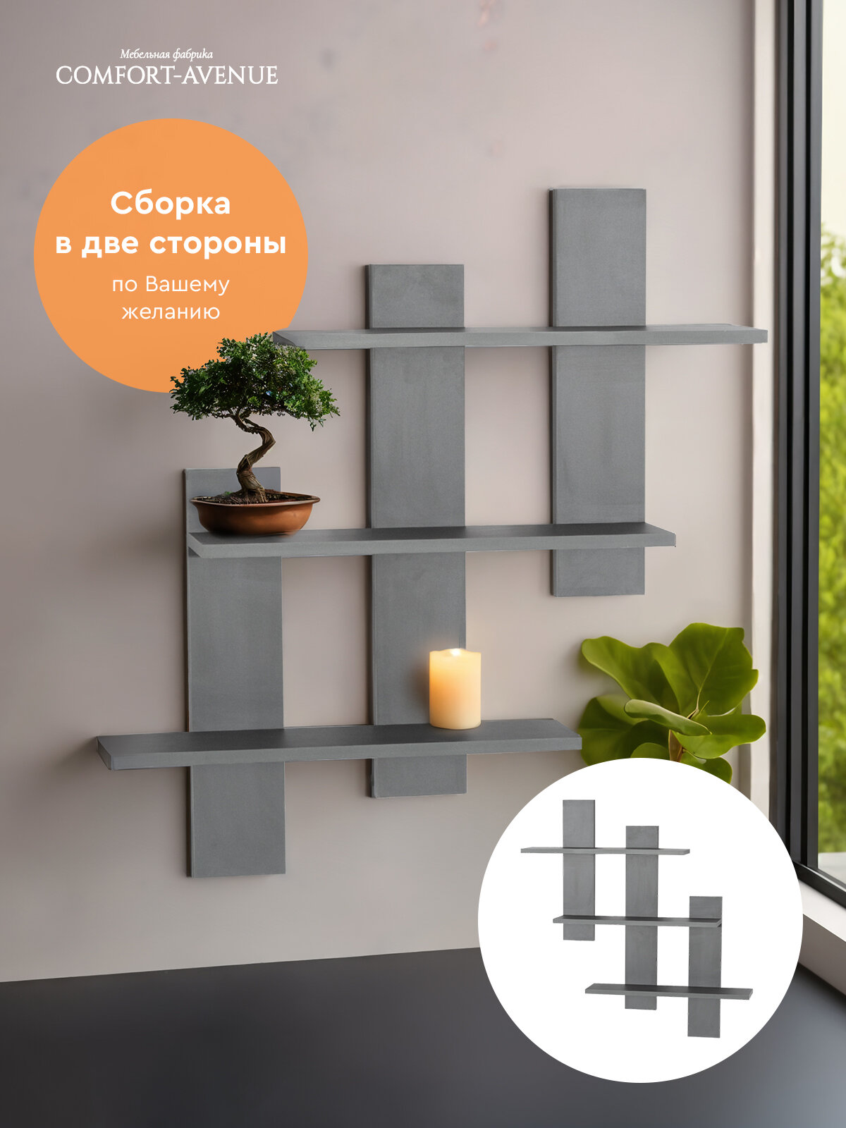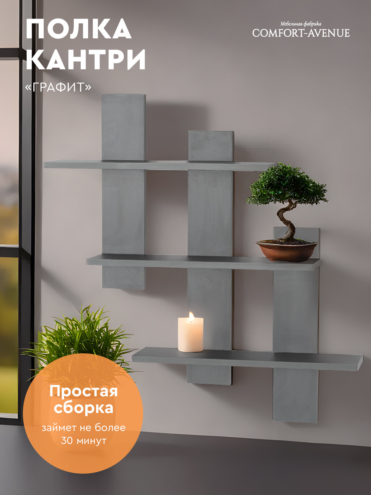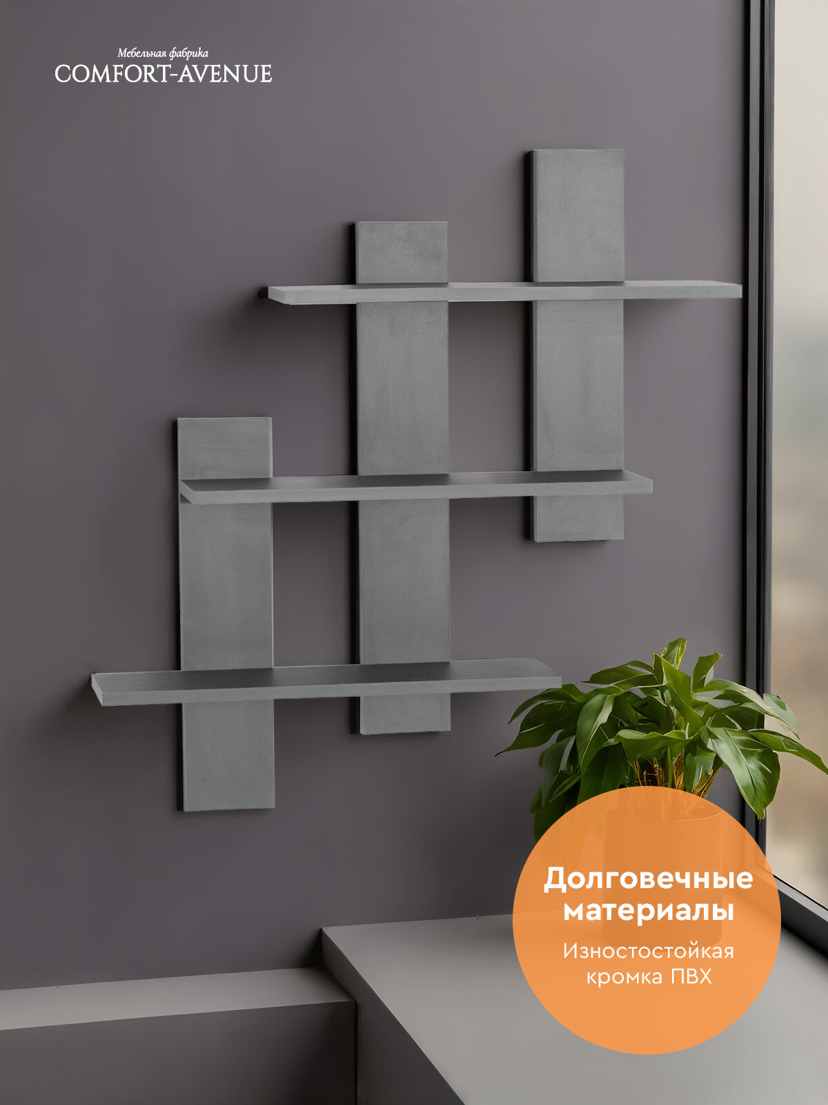 Характиристики этого товара не найдены!Отзывы на Полка настенная Comfort-Avenue "Кантри", ЛДСП, настенная, графит