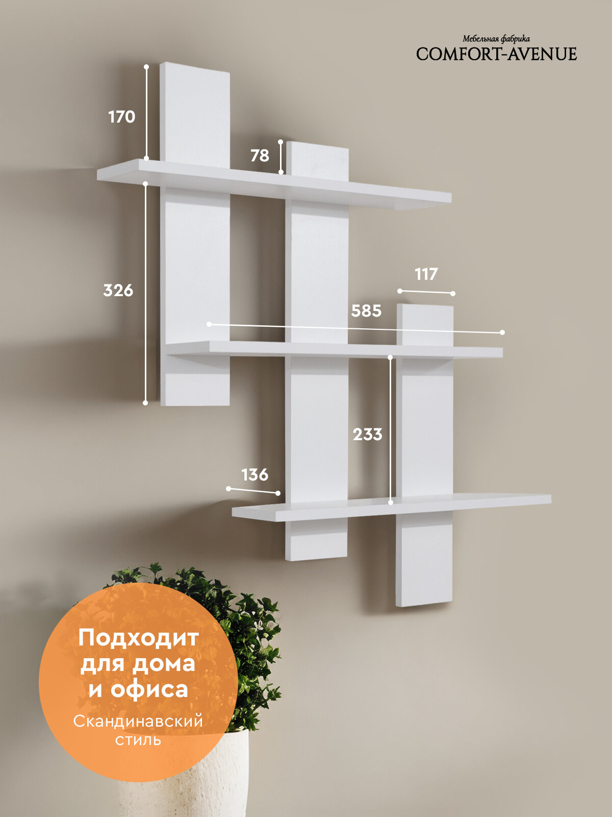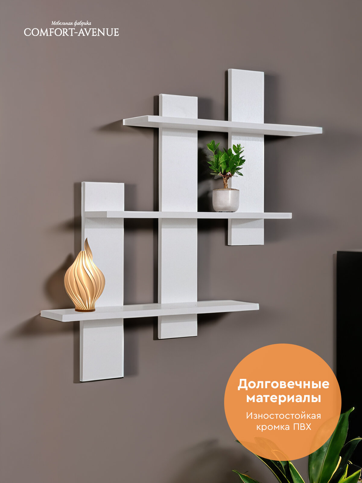10 цен на Полка Comfort Avenue "Кантри" настенная 82x85,5x13,6 цвет Белый с тиснением