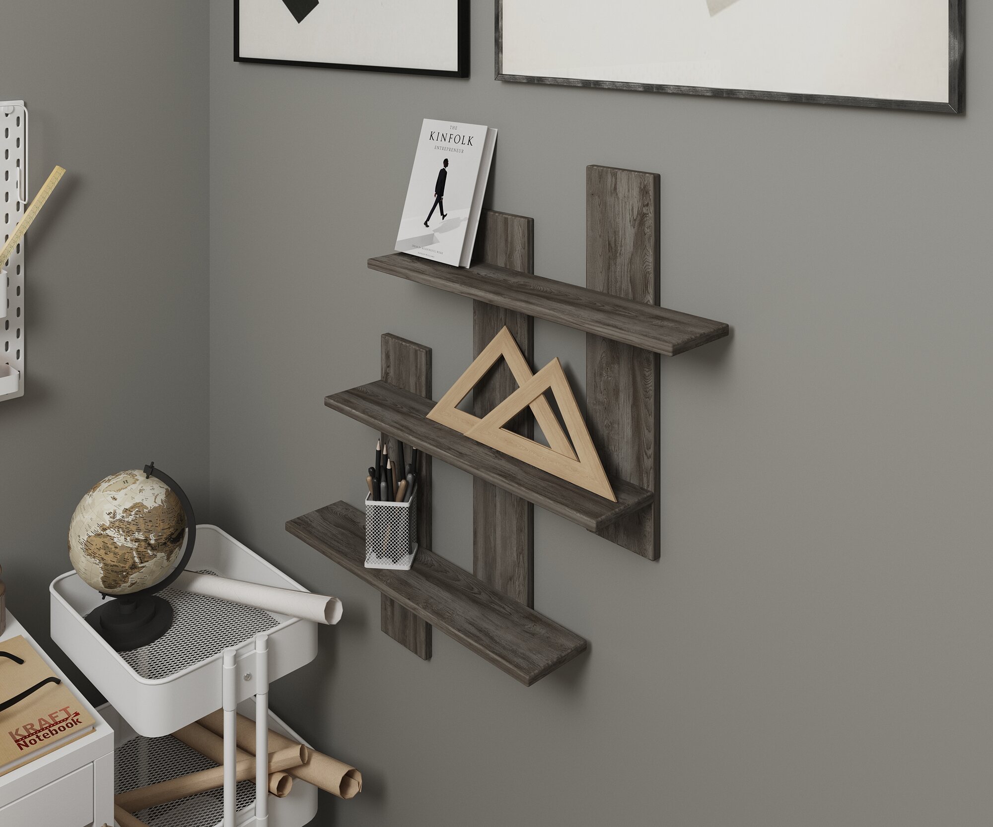 Полка настенная Comfort Avenue "Кантри" 82x85,5x13,6, ЛДСП, Ясень Антрацит 4424 информация: