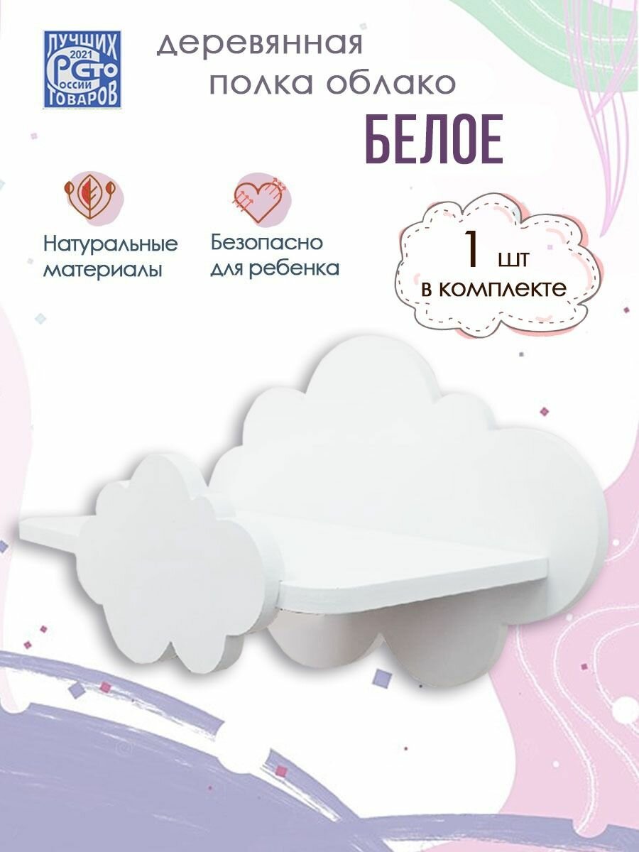 Отзывы на Полка-облако детская настенная прямая деревянная крашеная - 1шт белые 25х15х20 см