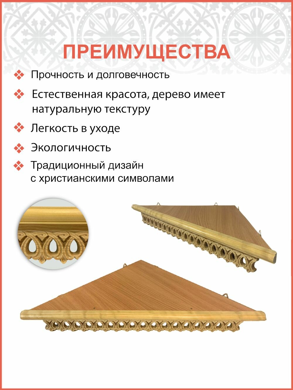 10 цен на Полка настенная для икон угловая ажурная .058