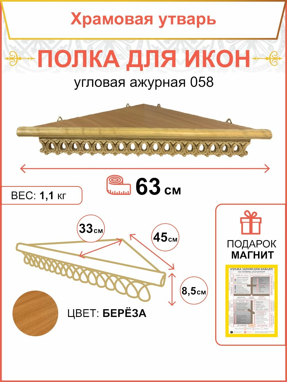 Полка настенная для икон угловая ажурная .058 информация: