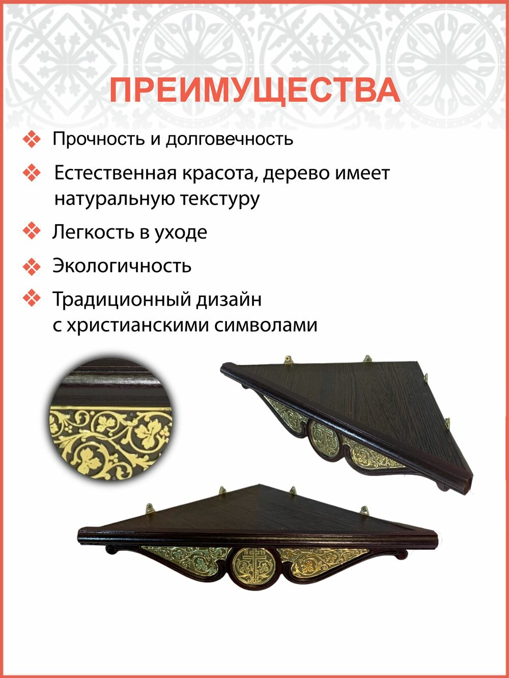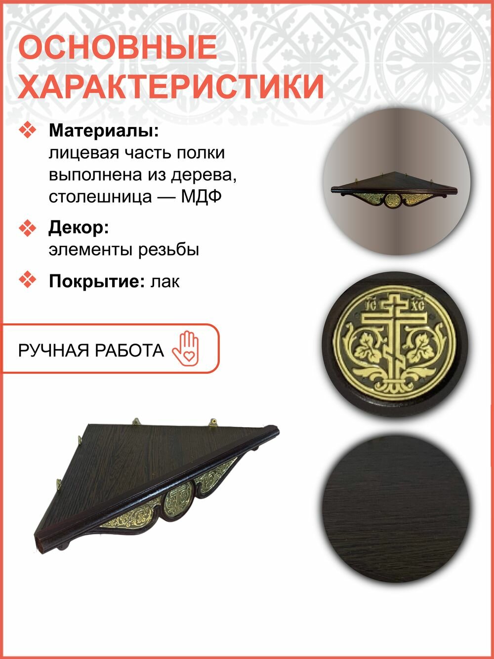 Полка настенная для икон угловая малая с басмой 054 информация: