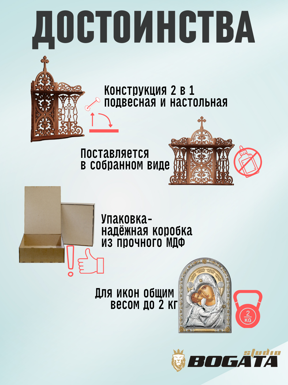 Полка для икон настенная настольная угловая резная деревянная домашний иконостас BOGATAstudio
