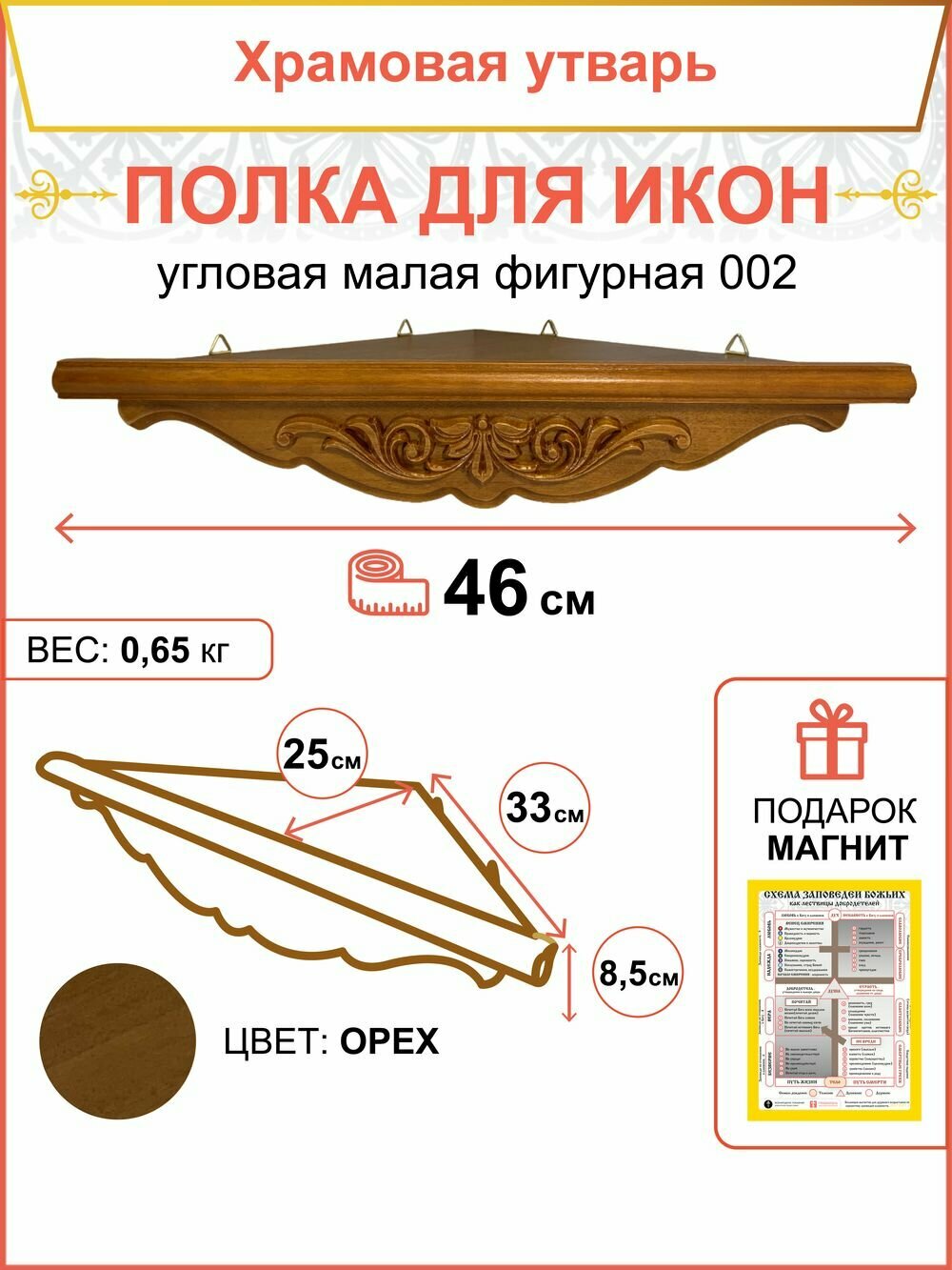 Полка настенная угловая для икон малая фигурная 002 информация: