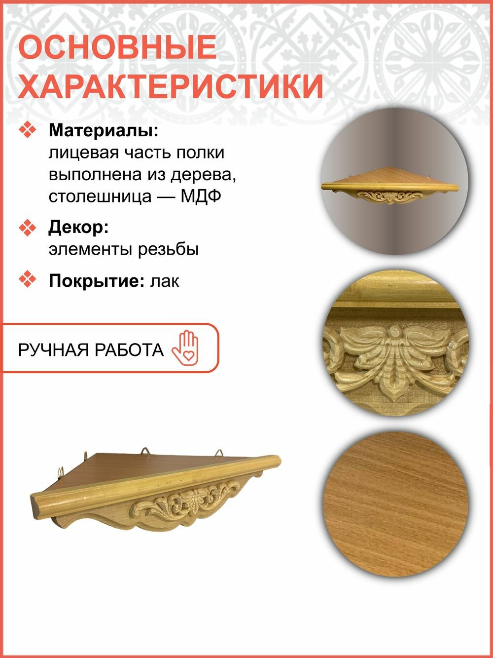 Полка настенная угловая для икон малая фигурная 014 информация: