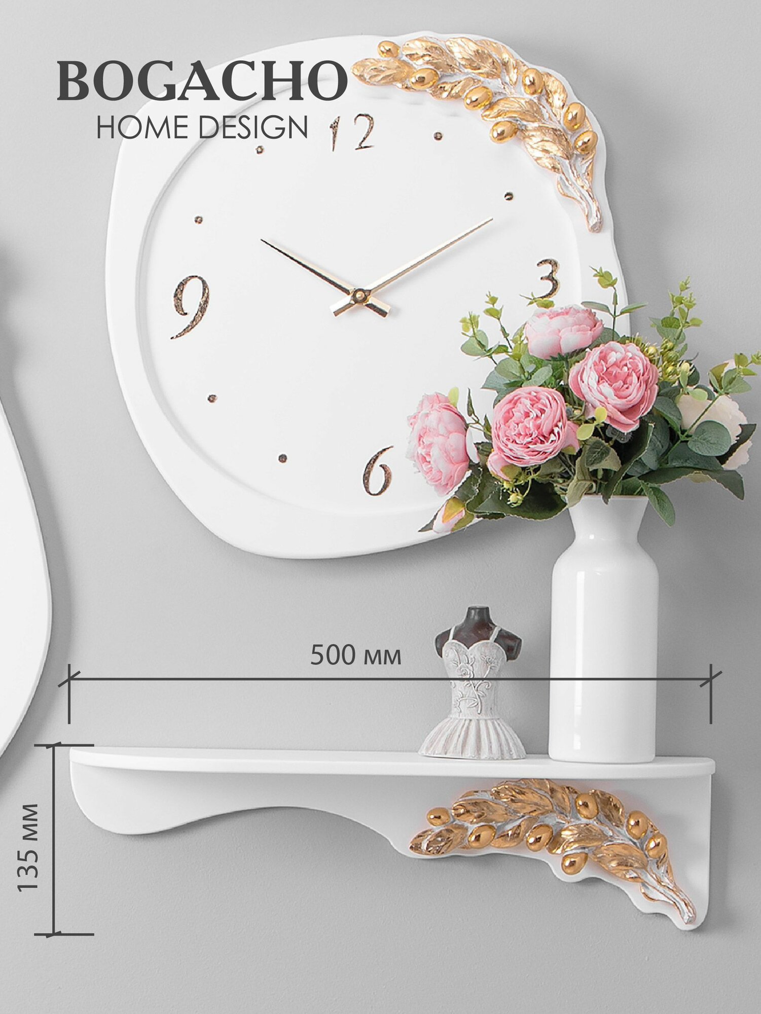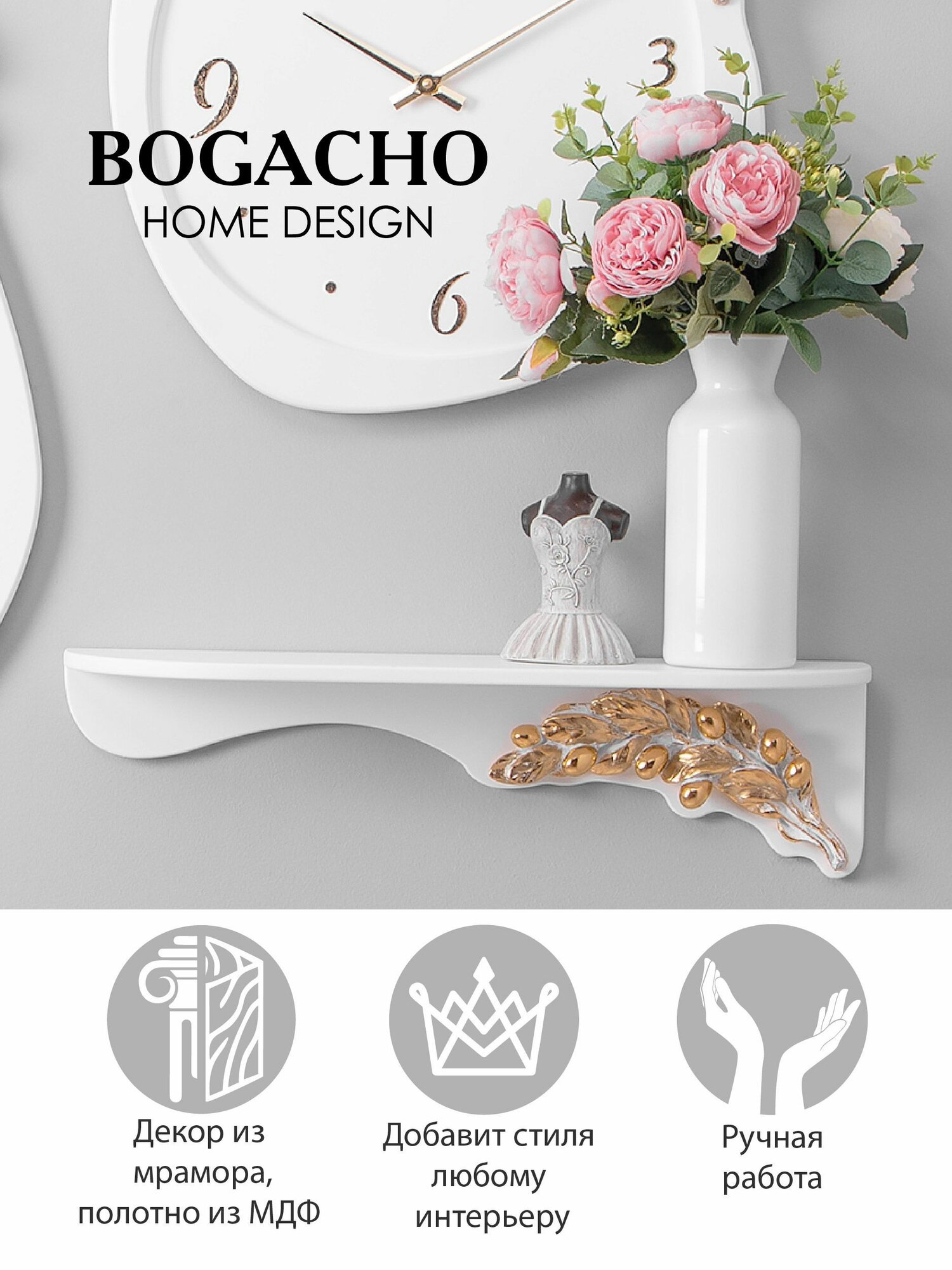 Узкая настенная полочка с элементами из мрамора BOGACHO Oliva Branch Atmosfera, для интерьера в стиле прованс информация: