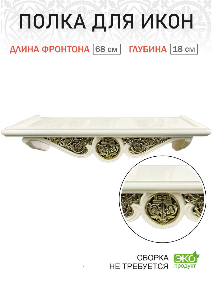 10 цен на Полка для икон 1 ярусная прямая удлиненная с басмой слоновая кость