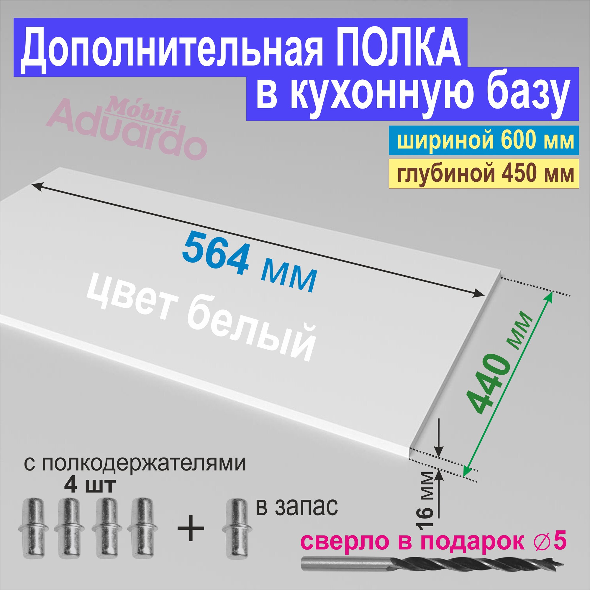 10 цен на Полка Дополнительная в Кухонную Базу 600мм, Вкладная 564 х 440 х 16 мм; Цвет: W1000 Белый Премиум, 1шт.