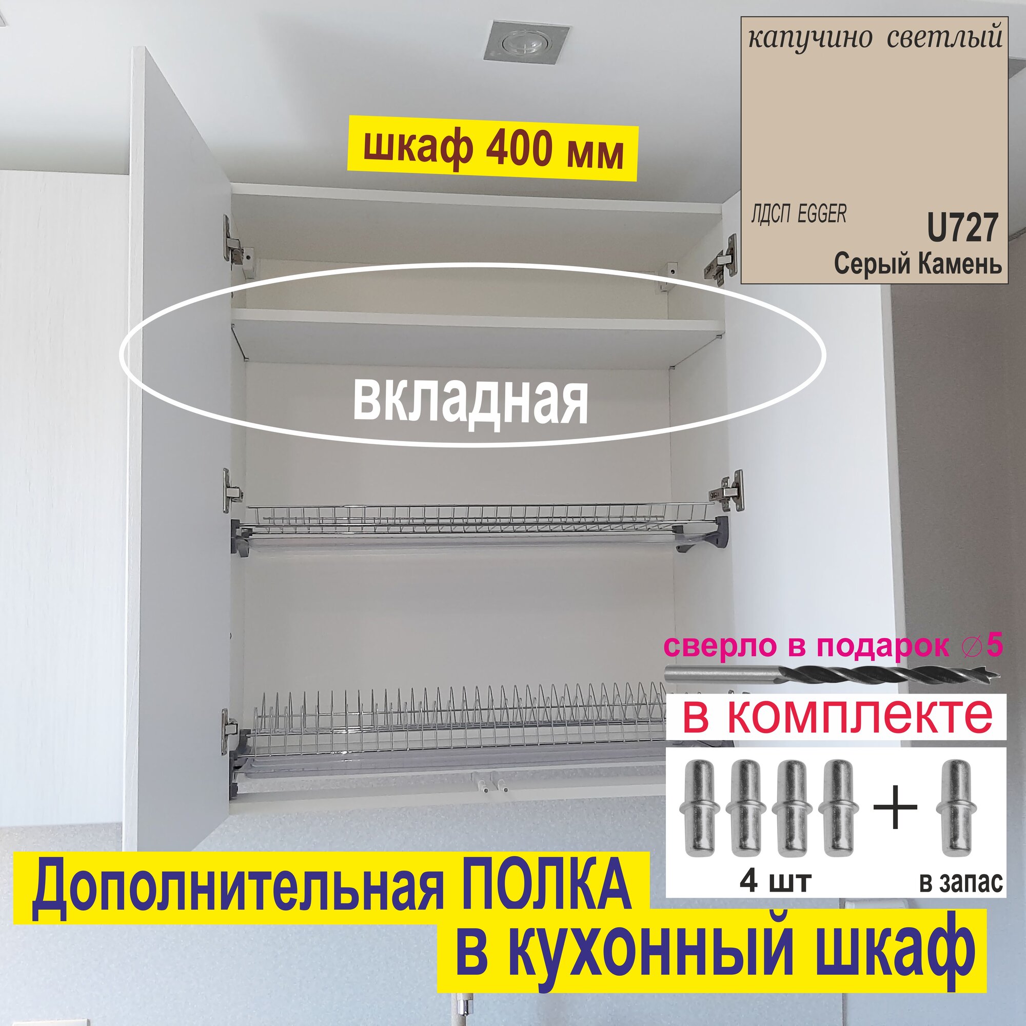 Полка Дополнительная (Комплект 2 шт) в Кухонный, Верхний шкаф 400мм, 364 х 270 х 16 мм; Цвет: Капучино Светлый, 2 шт. 2 840 ₽
