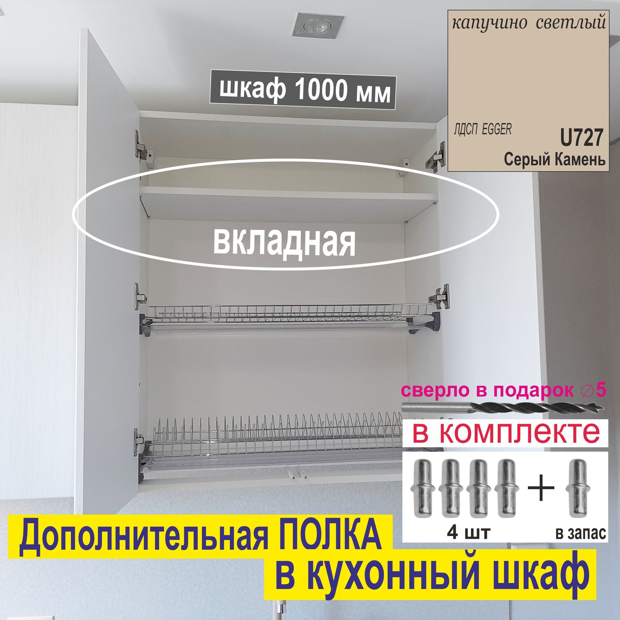 10 цен на Полка Дополнительная в Кухонный, в Верхний шкаф 1000 мм (1 м), Вкладная 964 х 270 х 16 мм; Цвет: Капучино Светлый, 1шт.