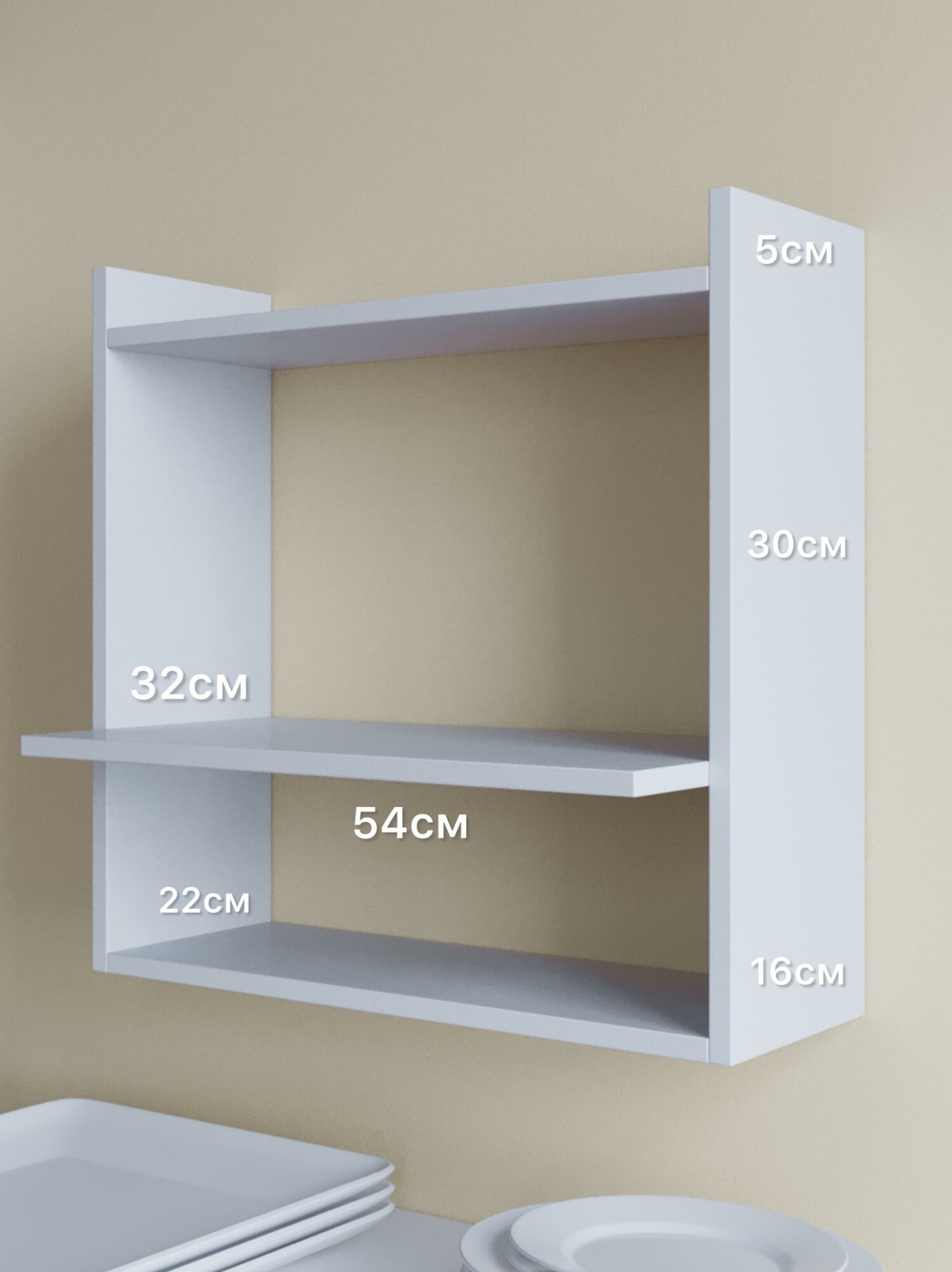 10 цен на Полка кухонная под микроволновку навесная, ЛДСП, белая шагрень