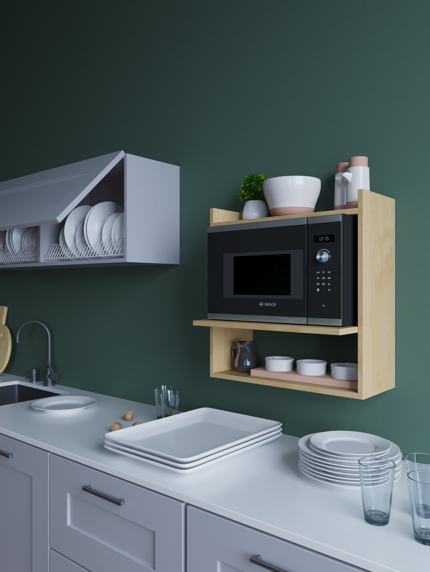 Полка кухонная под микроволновку навесная, ЛДСП, белая шагрень 2 479 ₽
