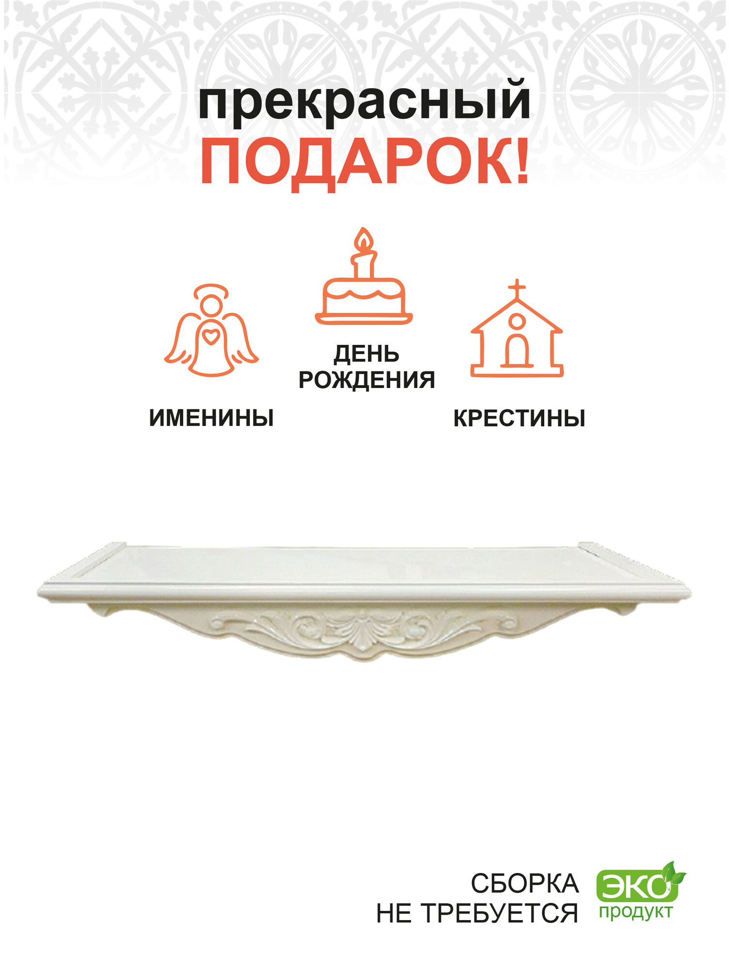 Отзывы на Полка для икон навесная 1 ярусная прямая фигурная слоновая кость